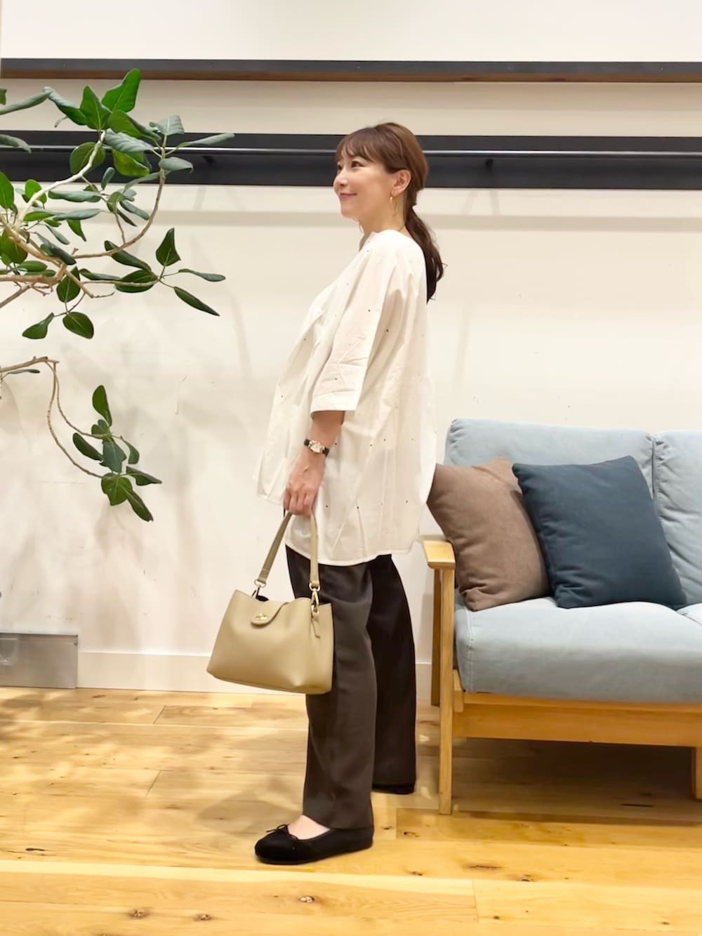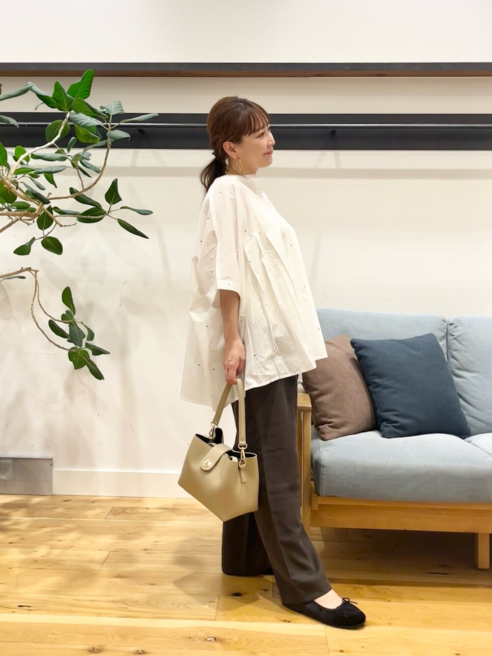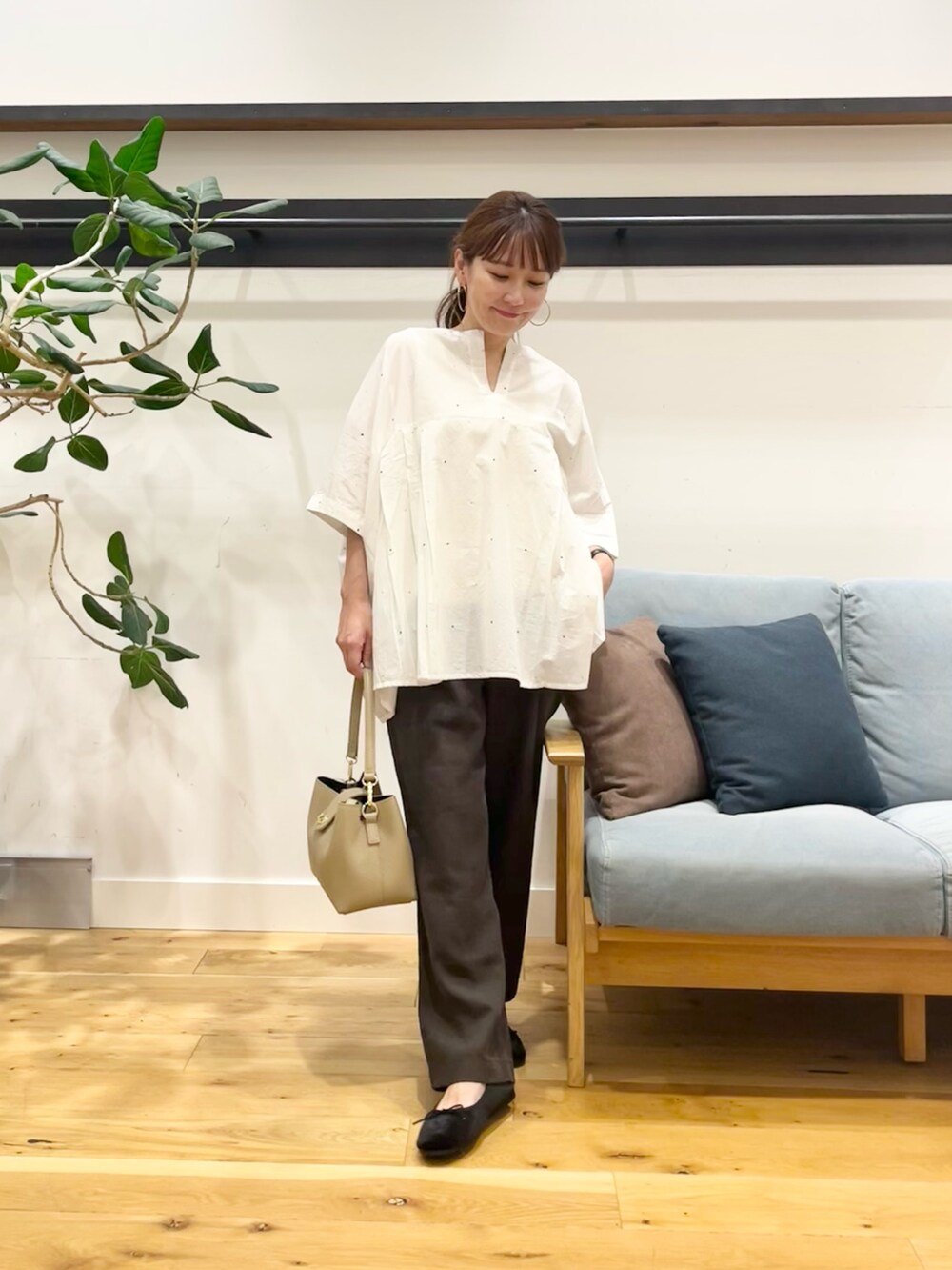 合わせたボトムスはFORK&SPOON ピーチスキンイージーパンツ。