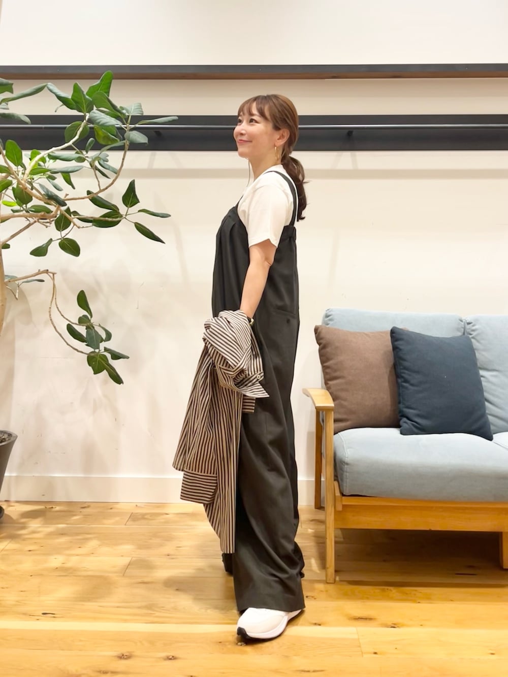 普通のサロペットも可愛いけど胸のラインが直線だとグッと大人っぽい印象ですね。