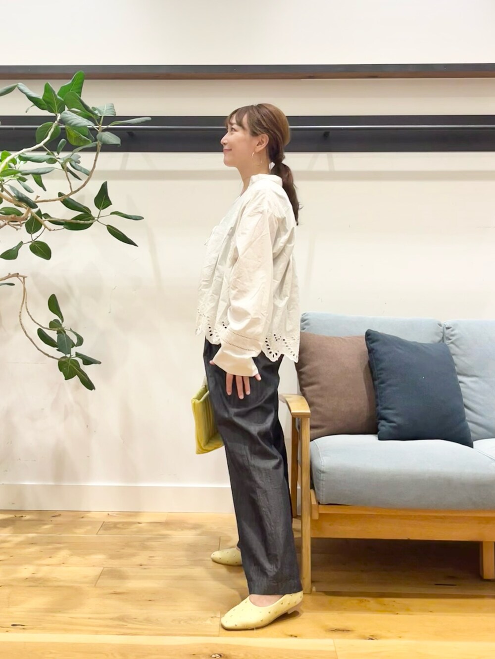 そしてボトムスにはシャンブレーデニムイージーパンツを合わせました。
