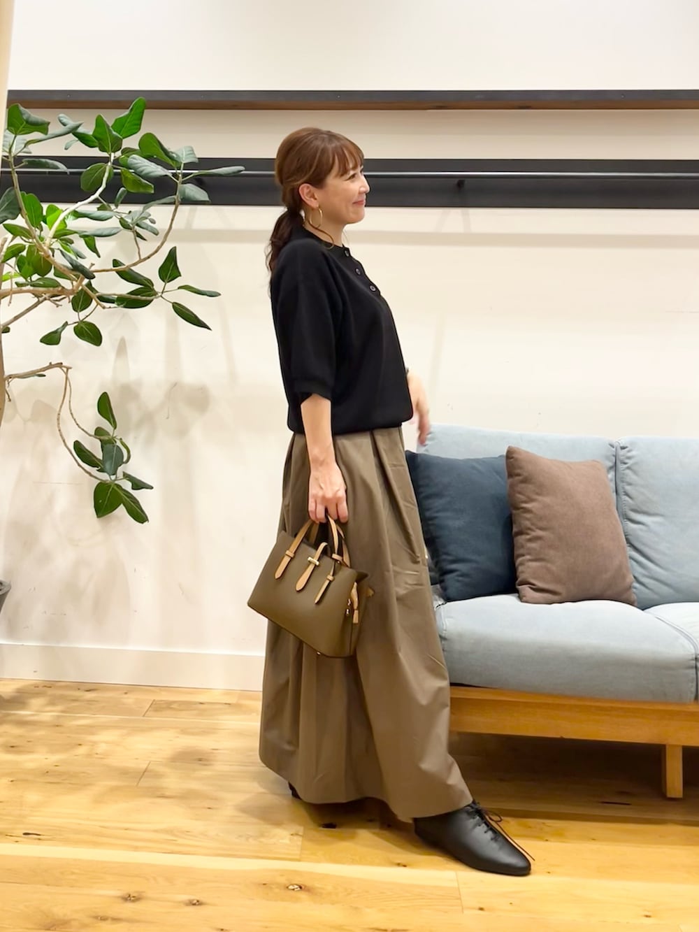 なのでこんなボリュームのあるスカートやワイドパンツ、タックが入ったゆったりめのパンツなんかと相性抜群です♪