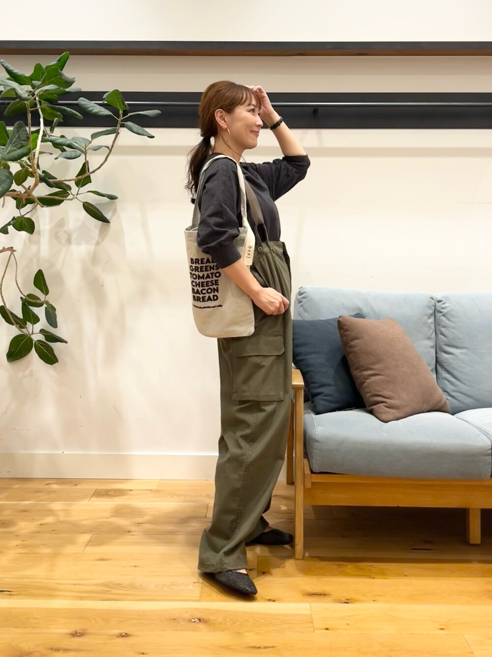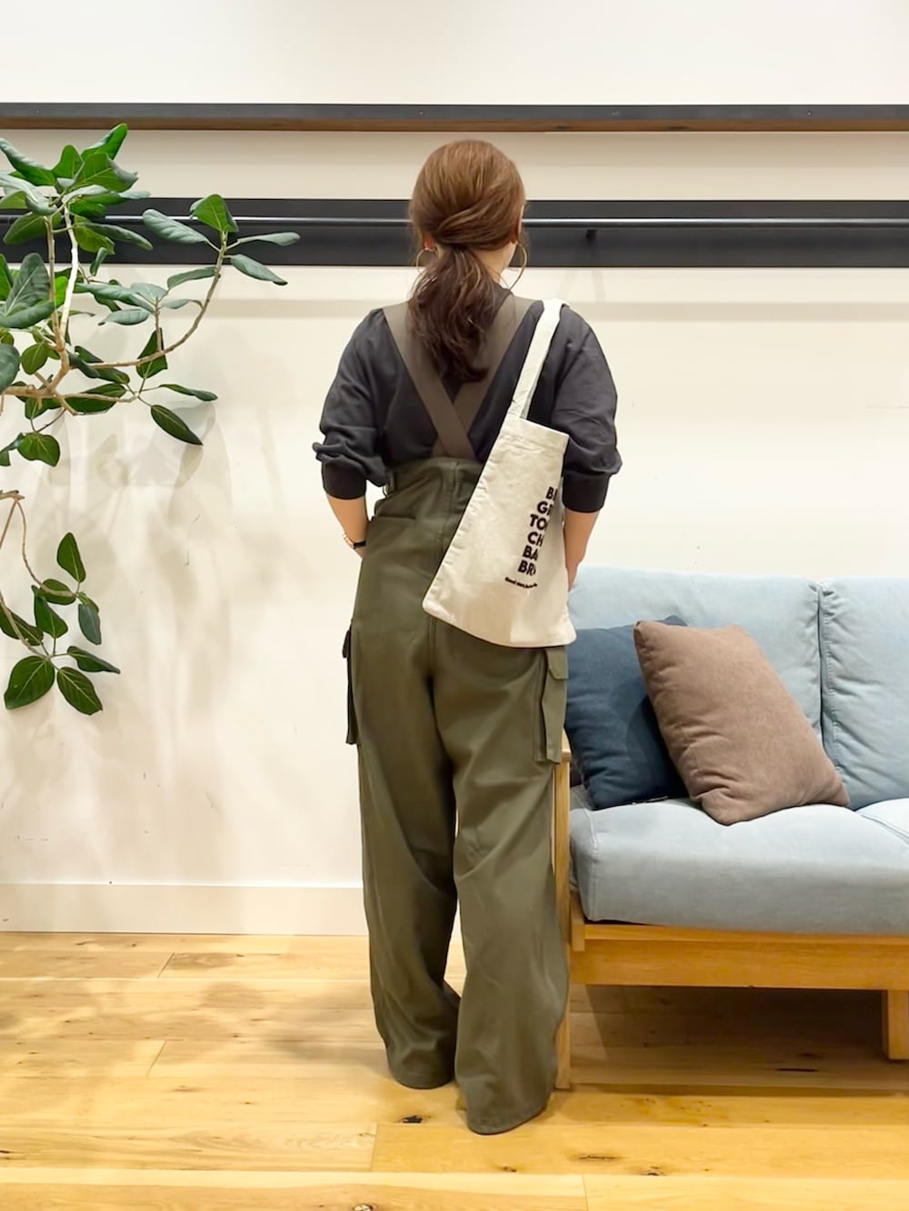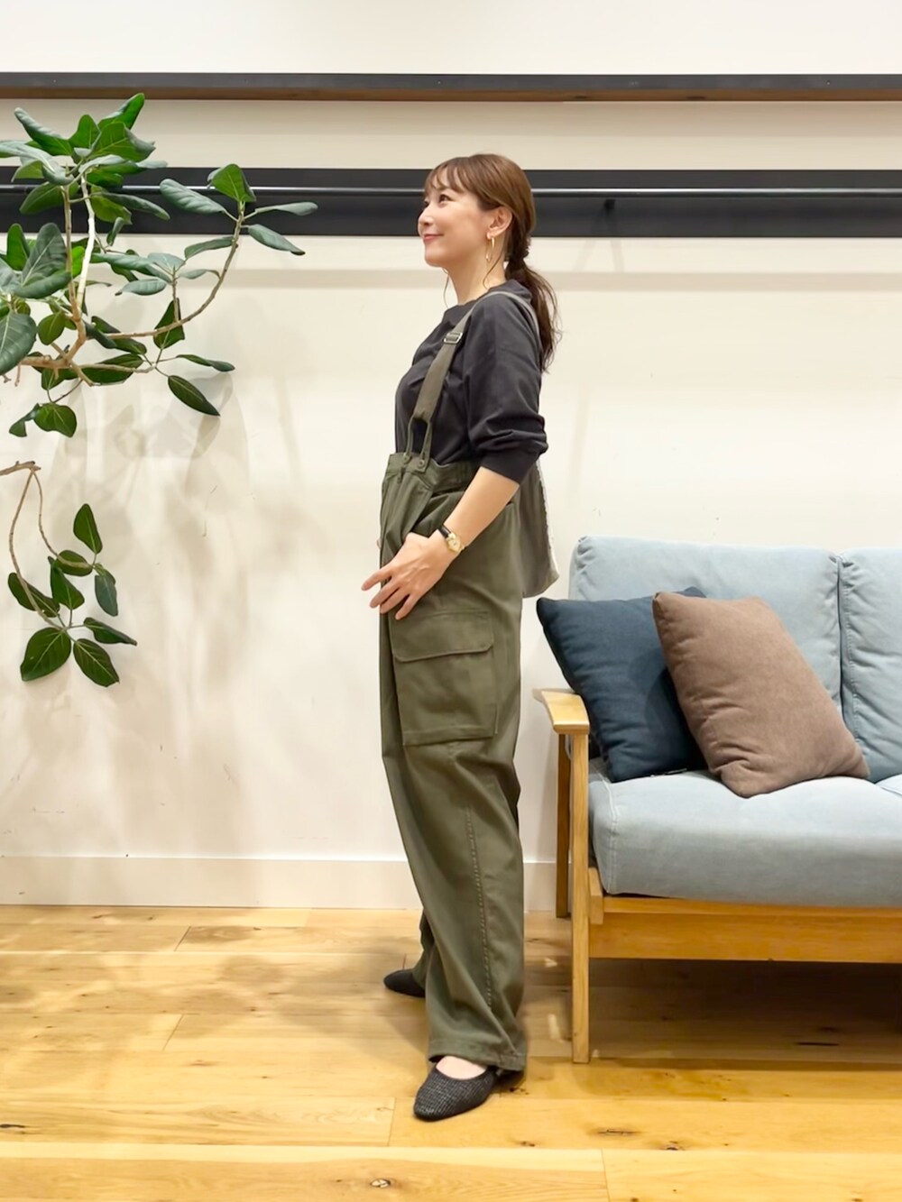 ドルマンではないので、こんなサスペンダーパンツやサロペット、ワンピースの中にも使いやすいと思います♪(^^)