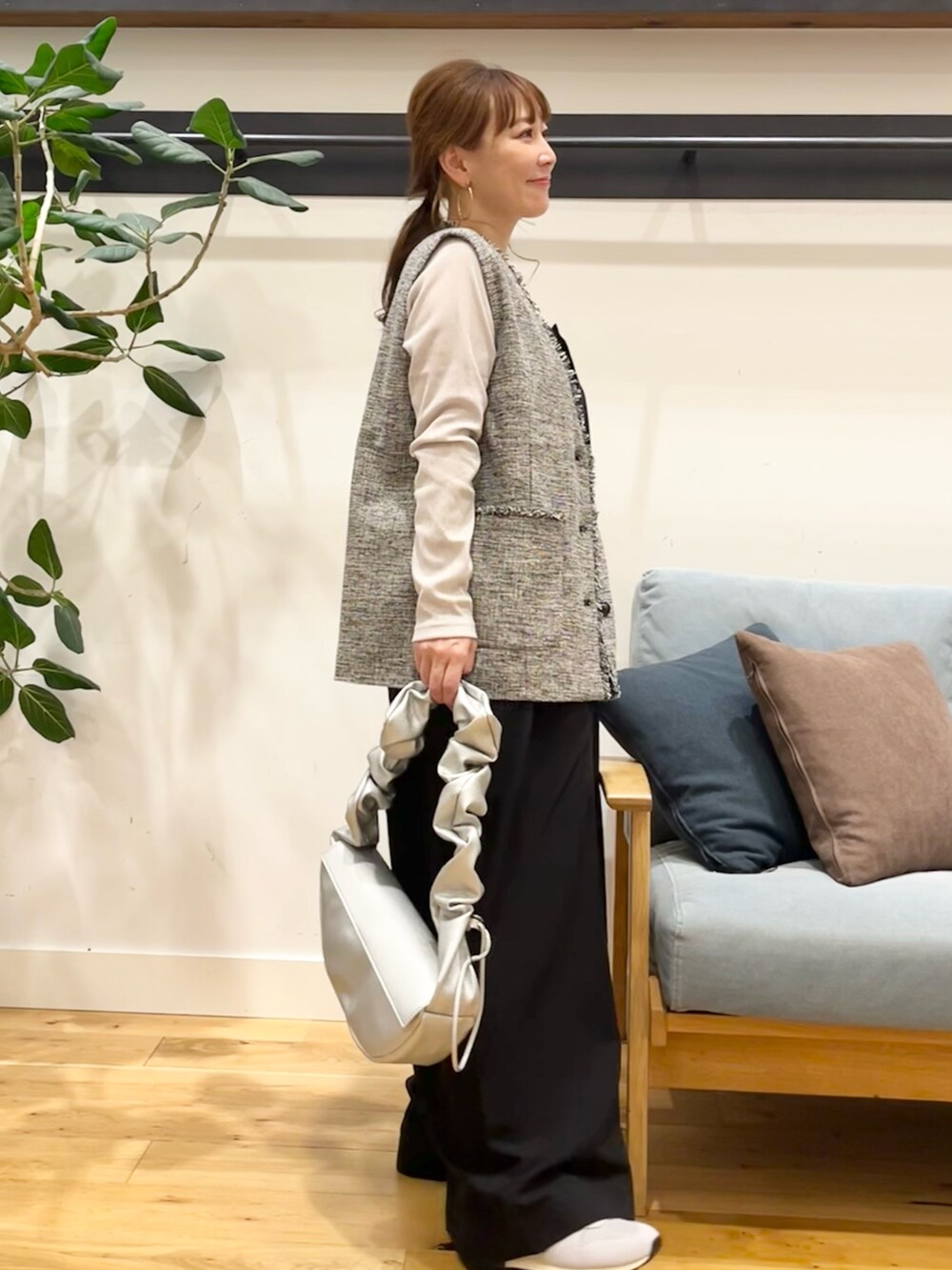 秋の季節感とお洒落感出るアイテムといえばベスト、そしてツイード生地。