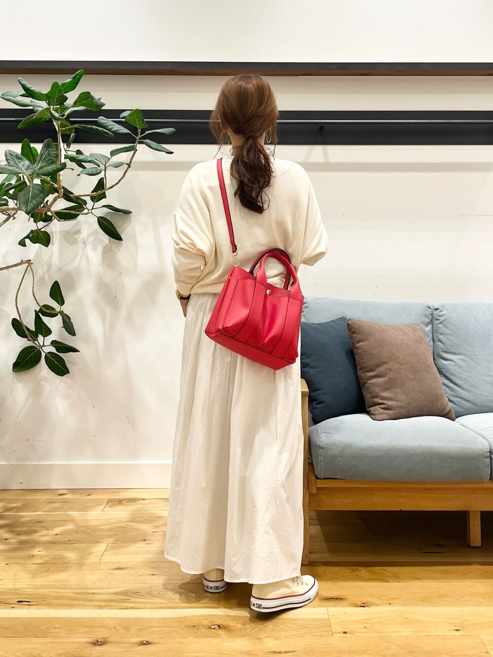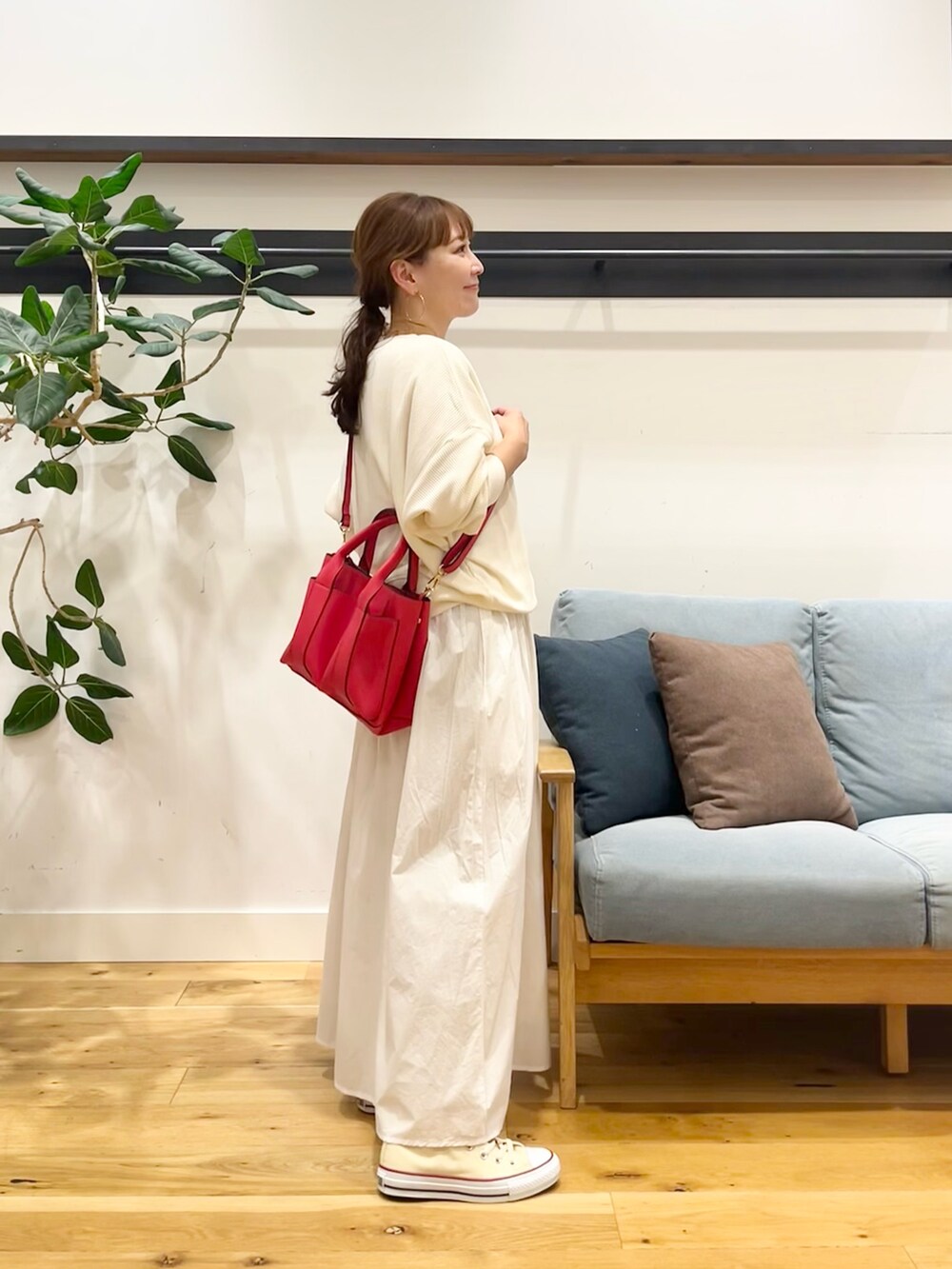 真っ白なスカートはトップスの色選ばずに着れるのが良きところ。今回はあえての白で合わせてます♪