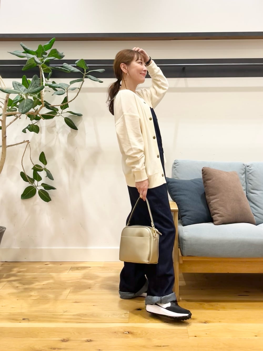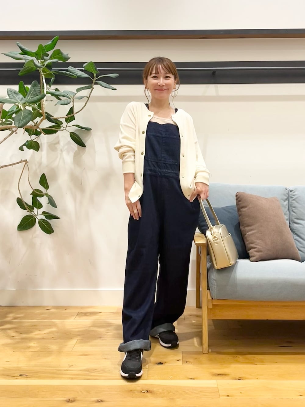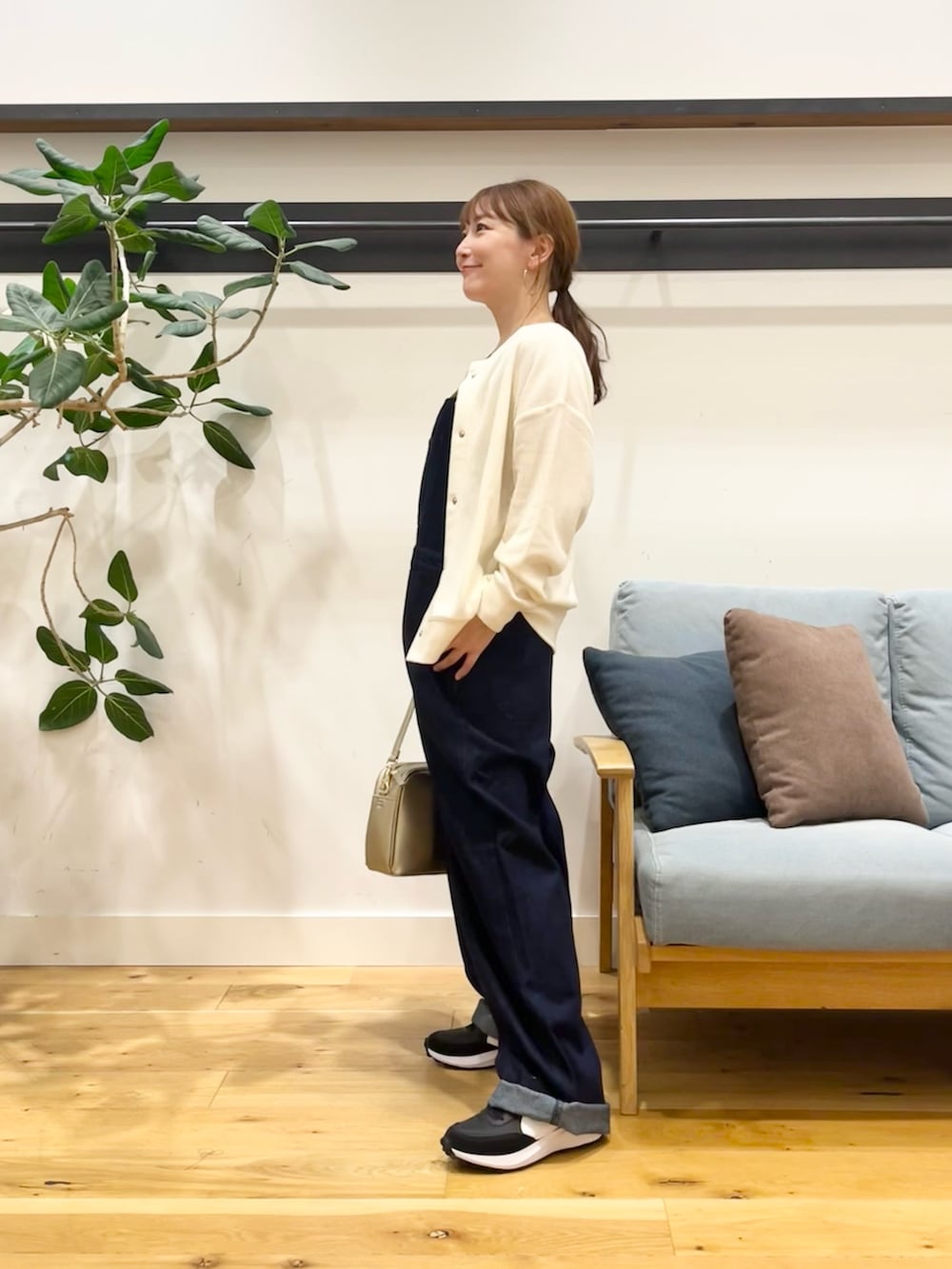 合わせてるのは柔らかいオーガニックコットンが使われたDenim Salopette。 Grow Organicのシリーズ、色々着てみて着心地の良さがやっぱり普通のデニムと違います! サロペットはSサイズでちょうどいいぐらいに適度にゆったりです。胸の位置このぐらいにして裾一つ折ぐらいですね。(151㎝) インナーを変えたり上から羽織ったりで長いシーズンお使いいただけます!(^^)
