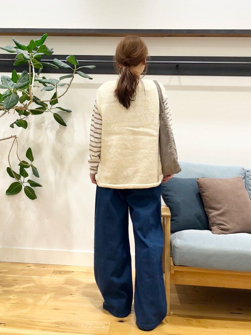 オーガニックコットンの柔らかくて気持ちいい履き心地のDenim Tuck Wide Pants。