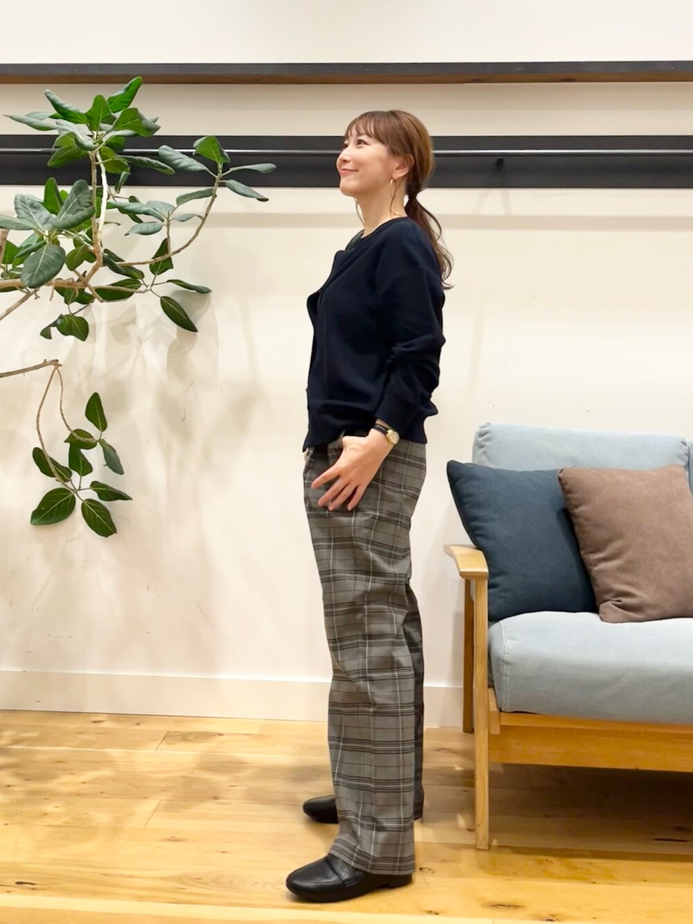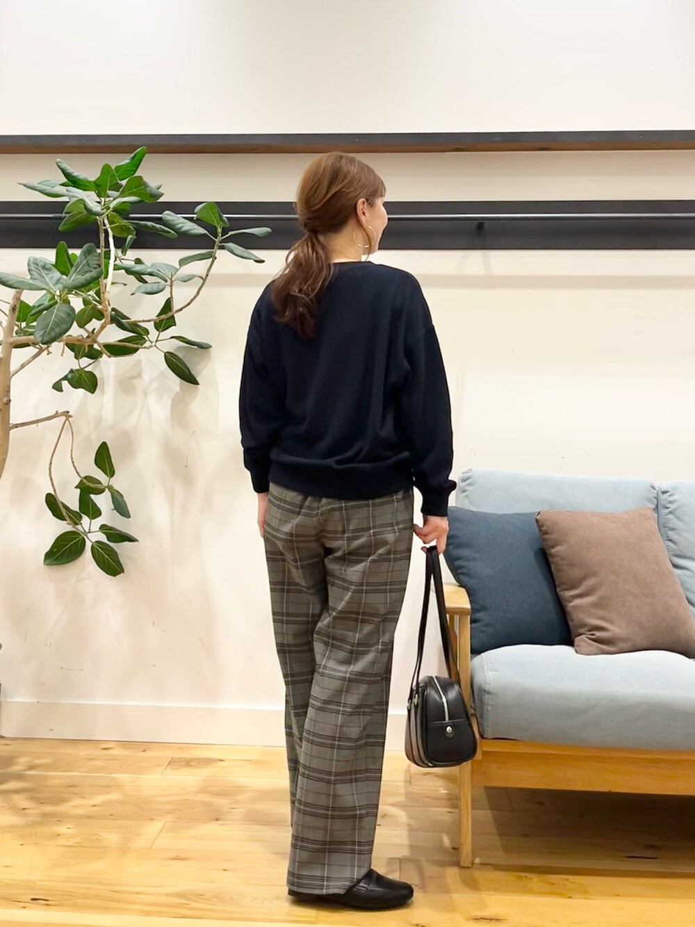 シンプルなトップスを合わせるだけでも大きめのチェックがポイントになってくれます。(^^)