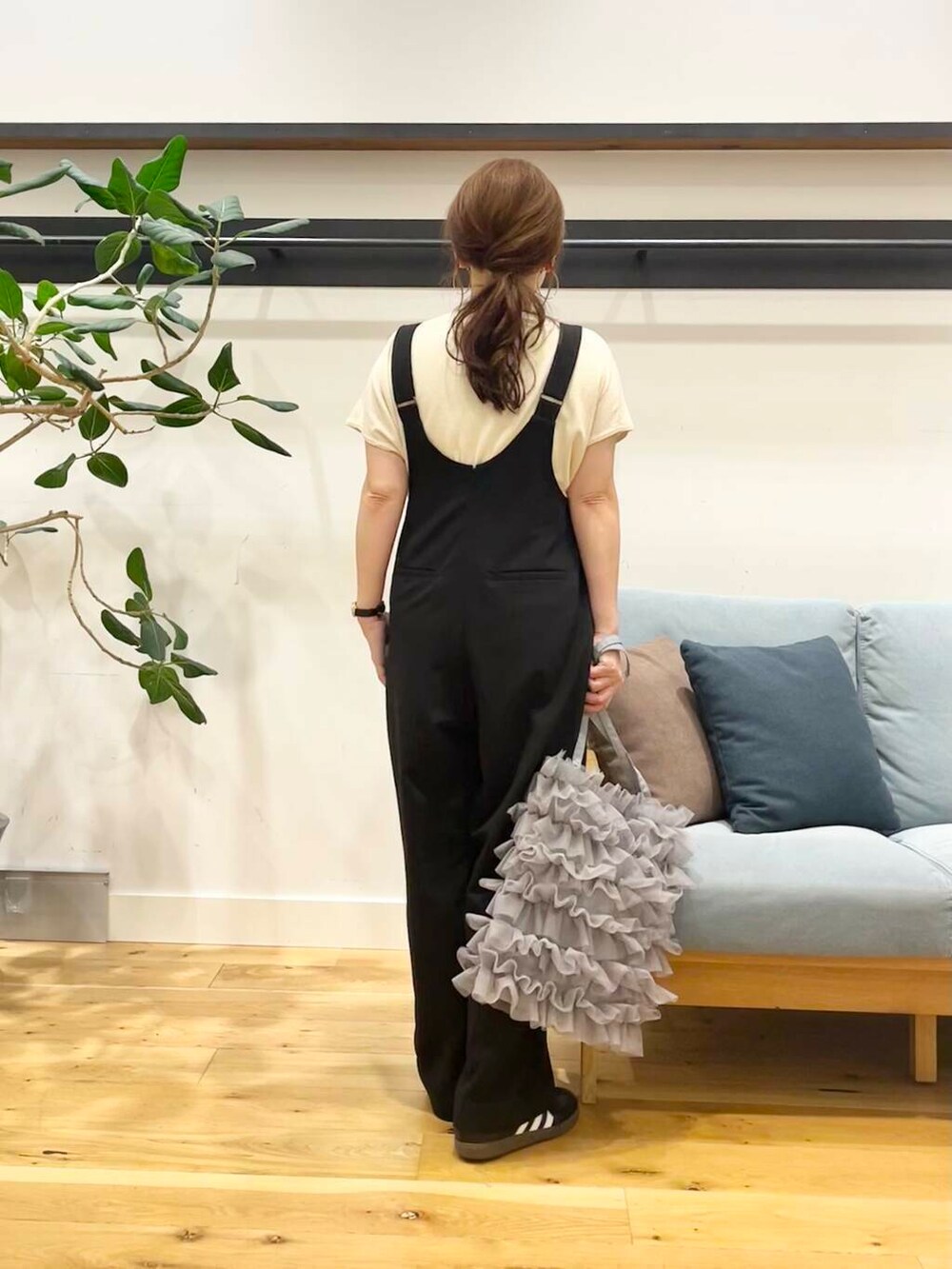 しかもゆるっと体のラインを拾わないシルエットなので細身の方からふくよかな方まで幅広く、シンプルなので年代も問わずお使いいただけるまさに世界平和すぎるオールインワンです◎