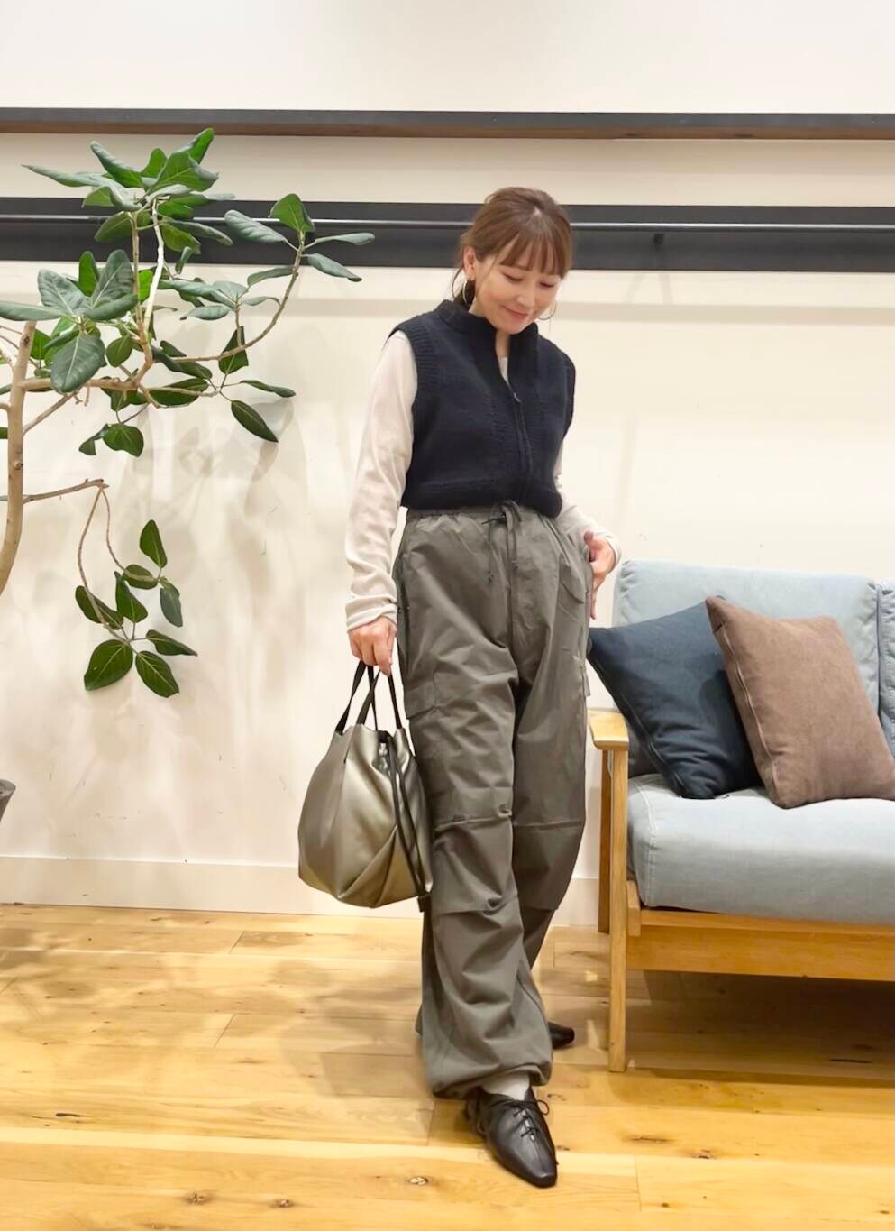 ダボっとしてて大きいかな…と思ったのですが、裾が絞れるのでこれは意外にも小柄さんにもおすすめパンツです◎(^^)