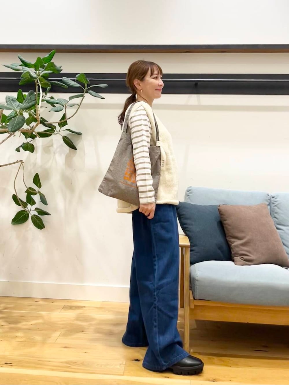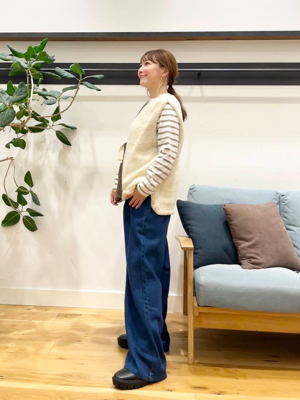 とはいえ、裾上げしてベルトでグッと締めたらめちゃくちゃいい感じのシルエットで可愛く履きこなせると思いますのでぜひお試しくださいね◎(^^)