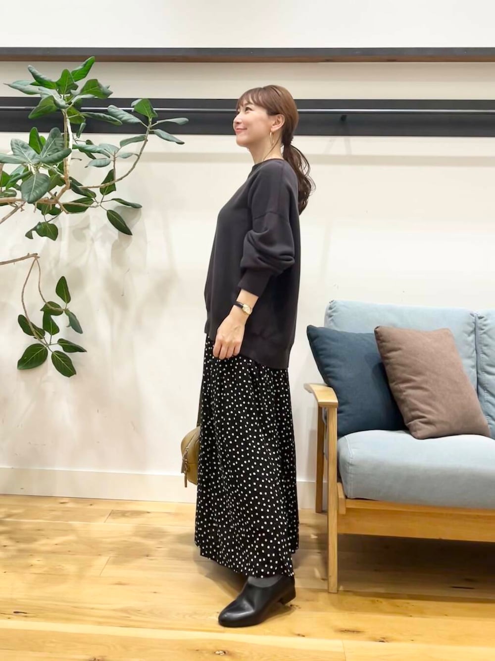シンプルコーディネートでも適度に大きすぎず小さすぎずのドットがちゃんとポイントになってくれます。
