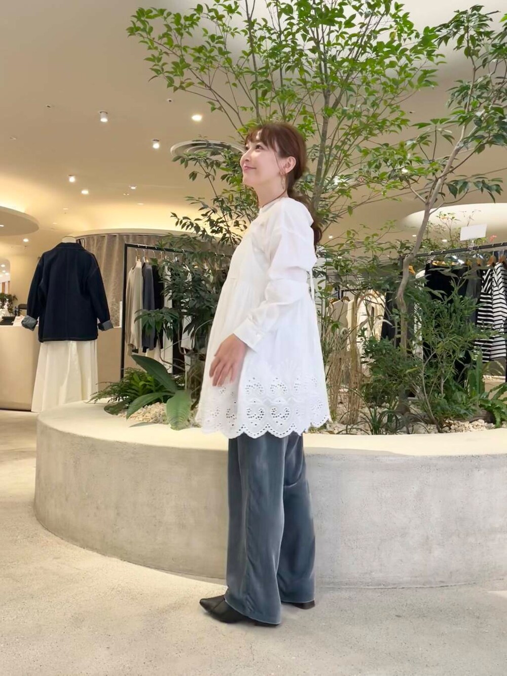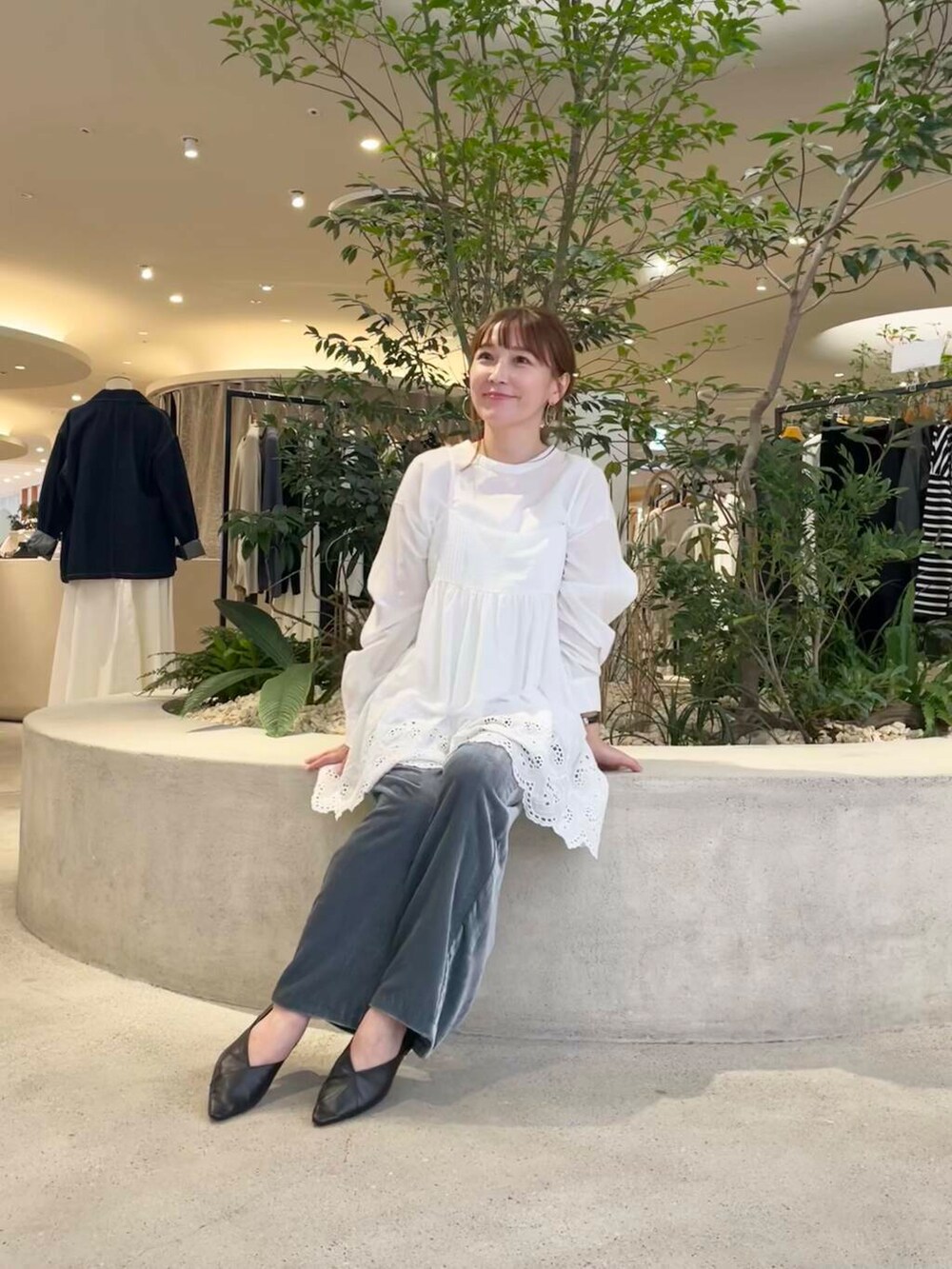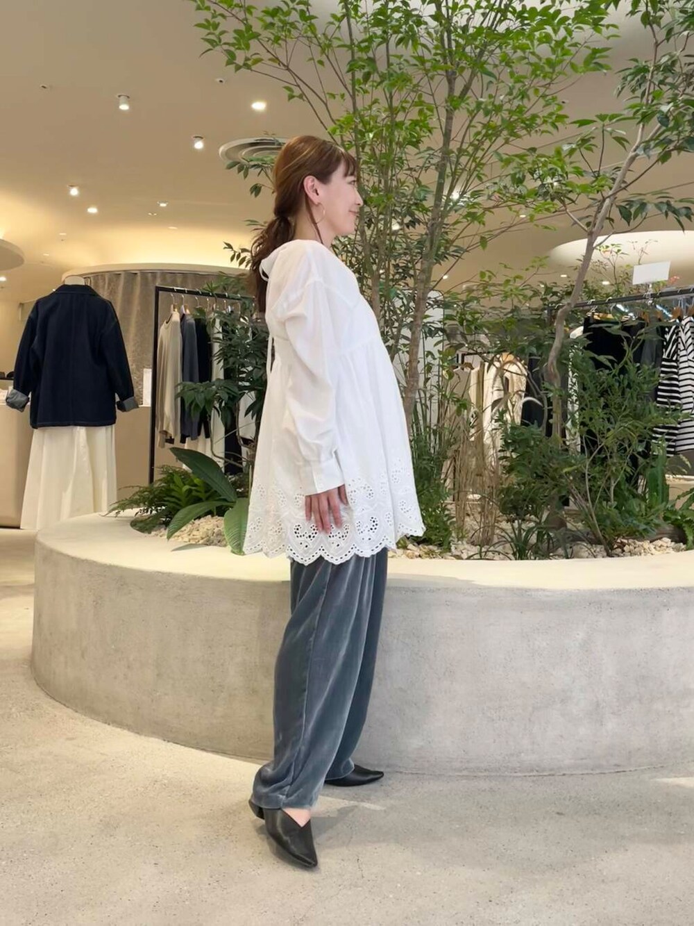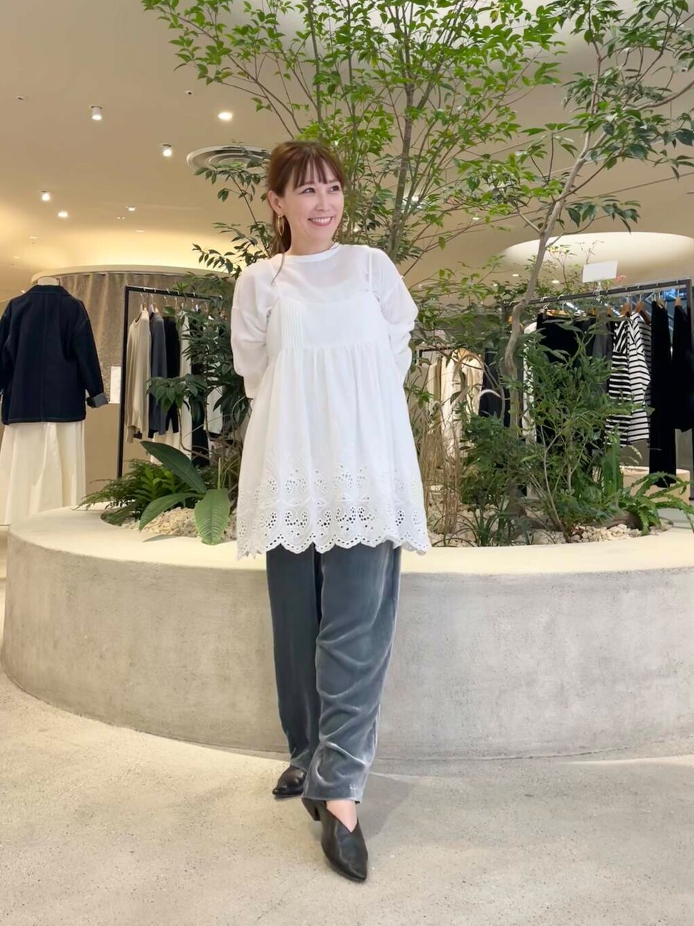 パンツはレーヨンシルクベルベットパンツを合わせました。