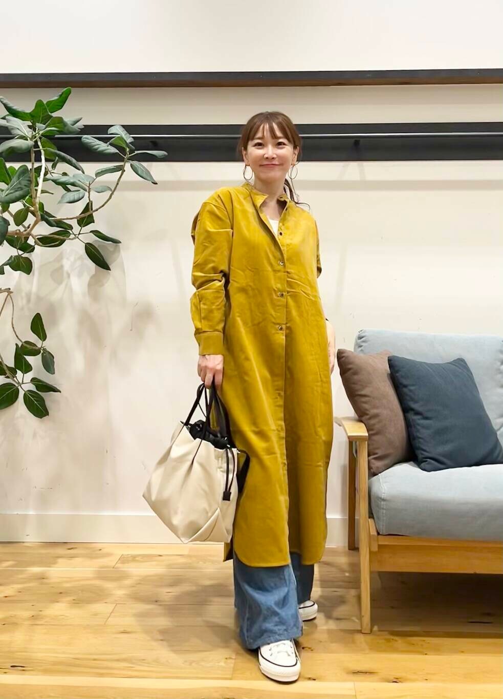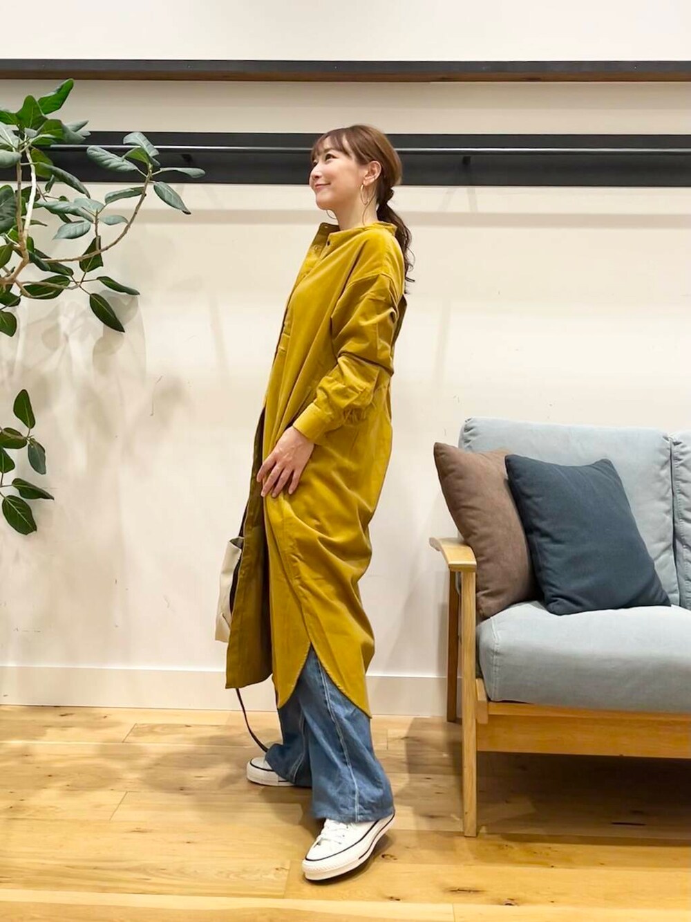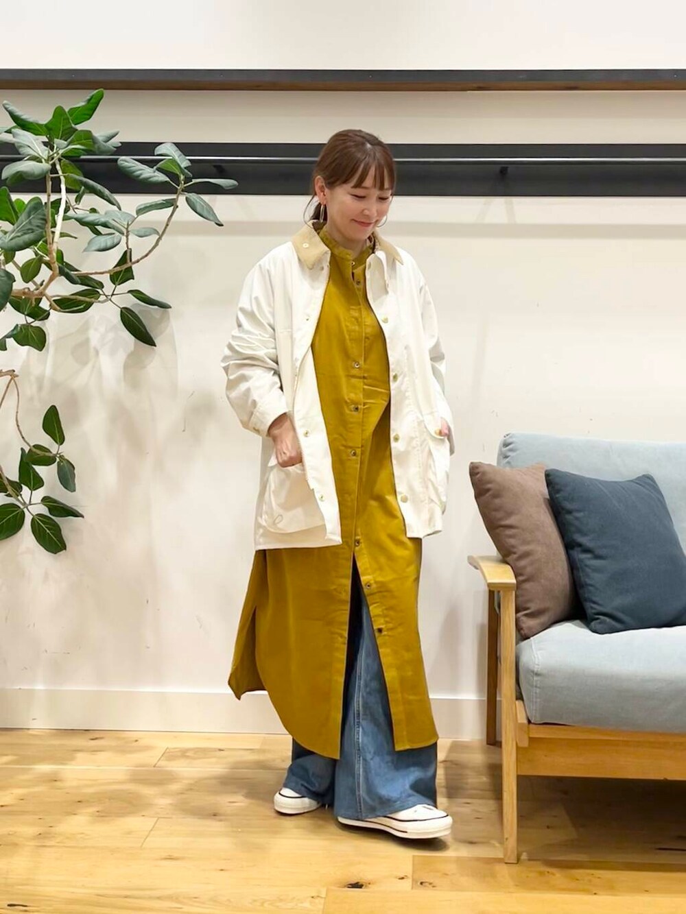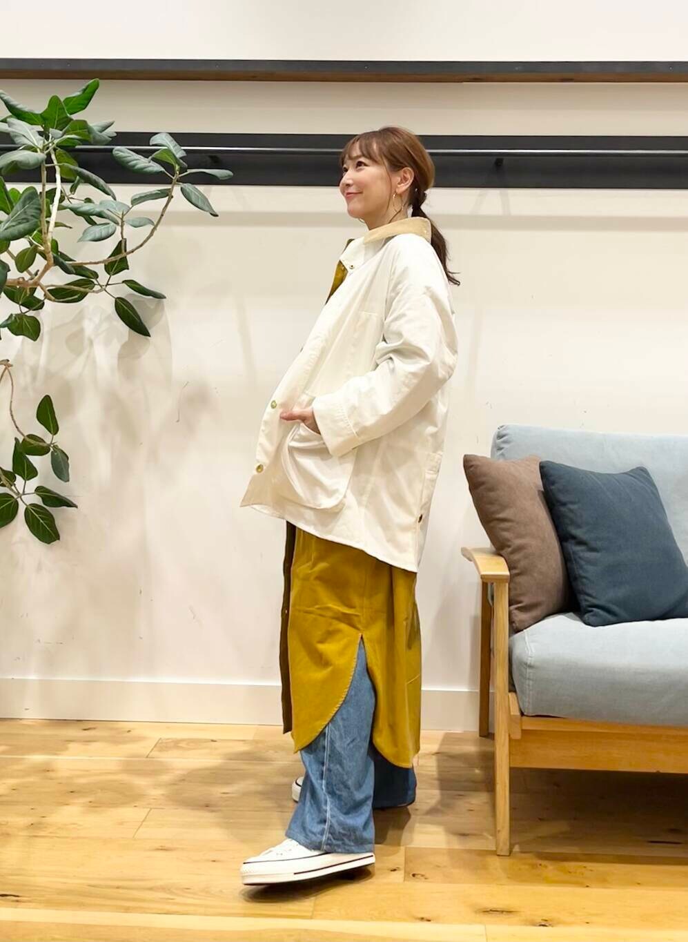 今回は1番明るめのマスタードを着てみました。