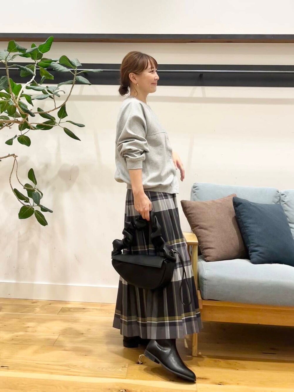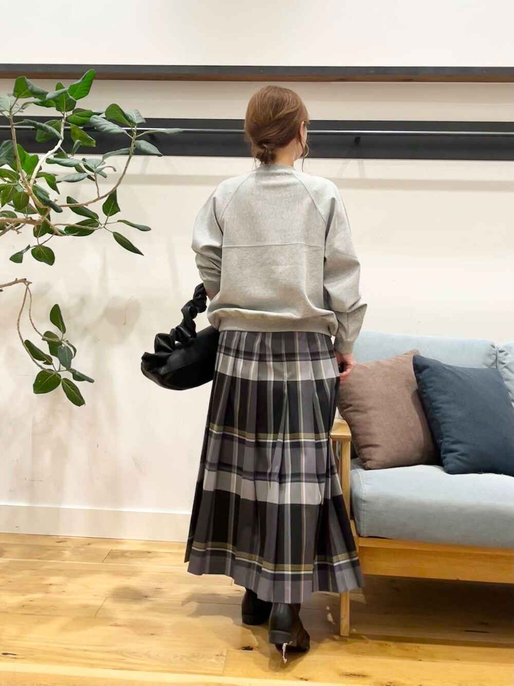 大きめのプリーツが広がりすぎず綺麗な落ち感が大人の女性にもバッチリ似合うこちら。