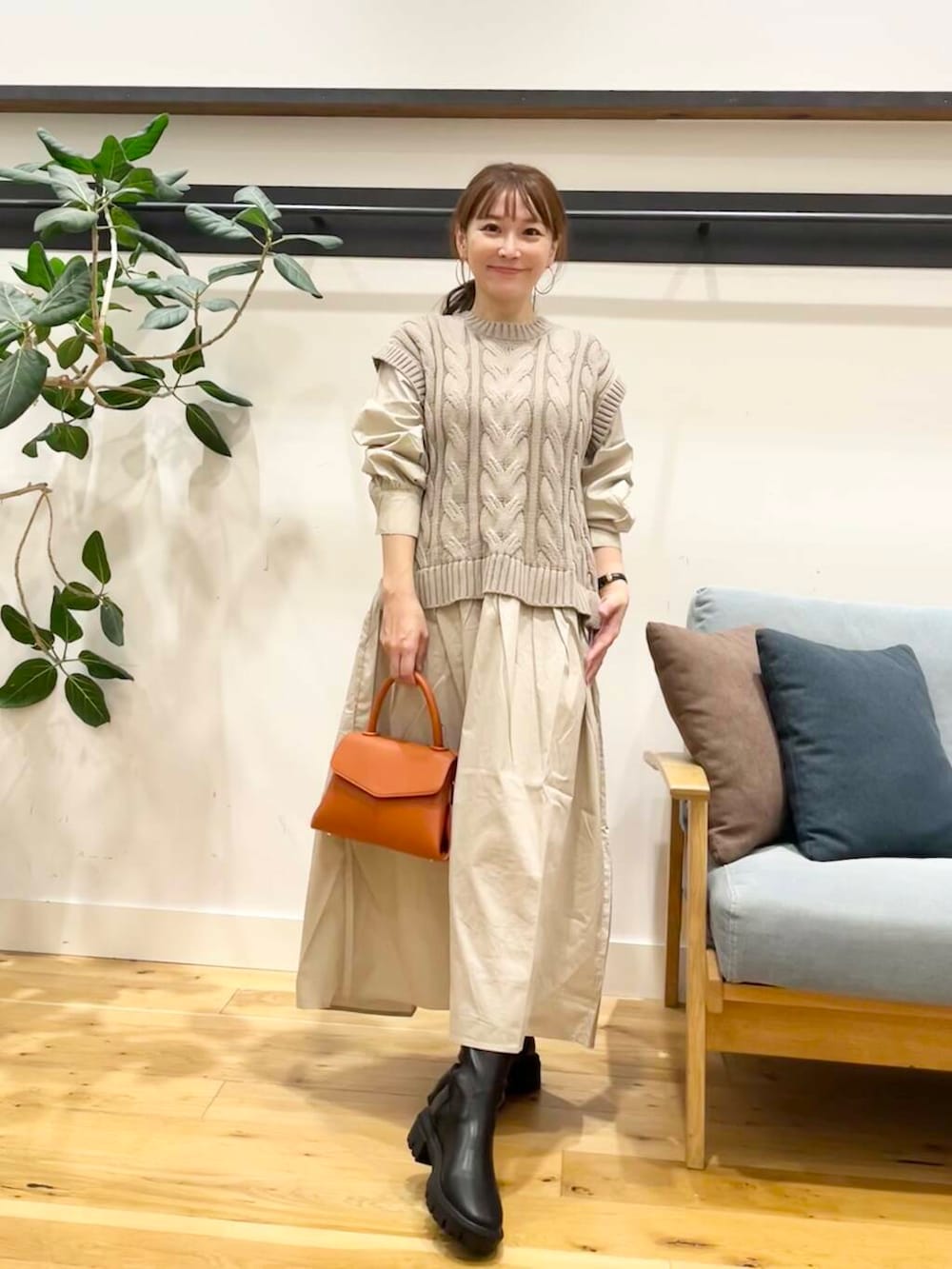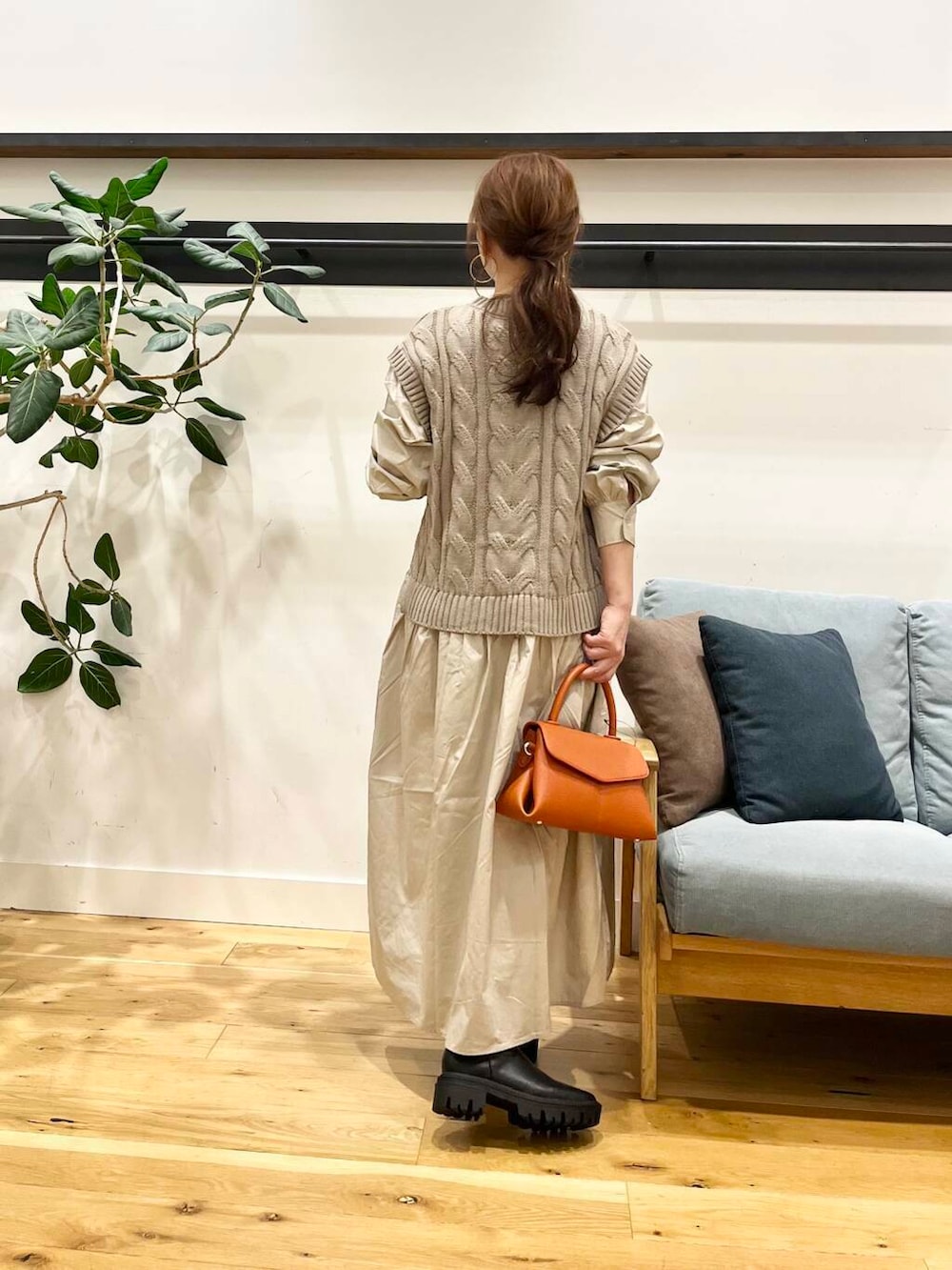ワンサイズですが着丈は小柄さんにもおすすめな感じ。くるぶしのちょい上になるぐらい、ショートブーツ合わせたらちょうどイイ感じになる長さです♪(151㎝)