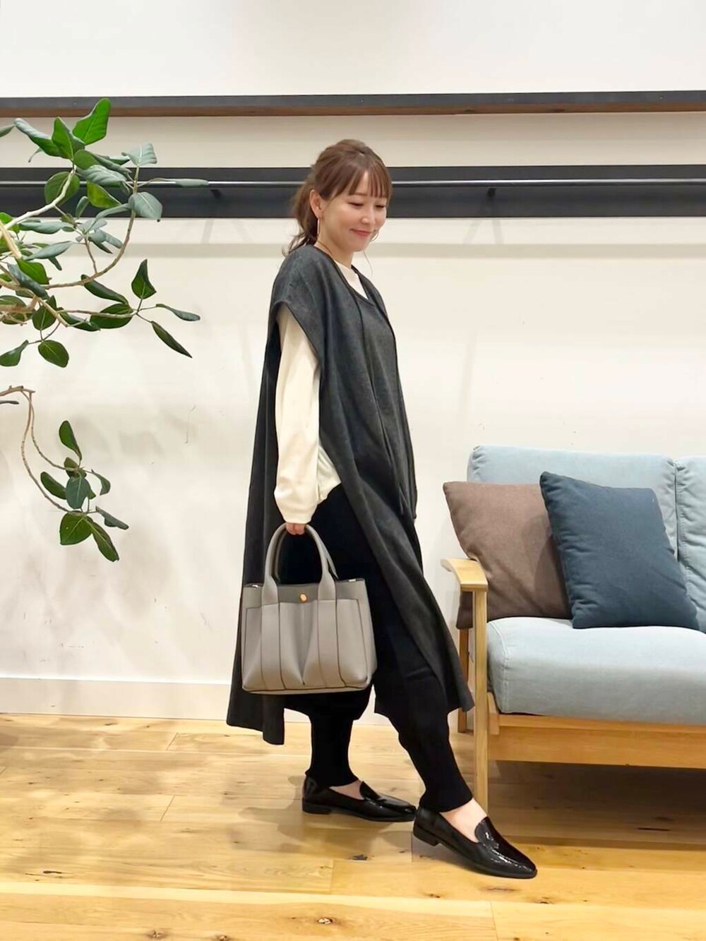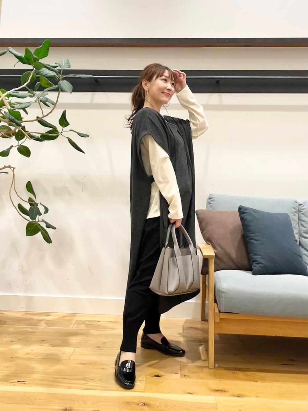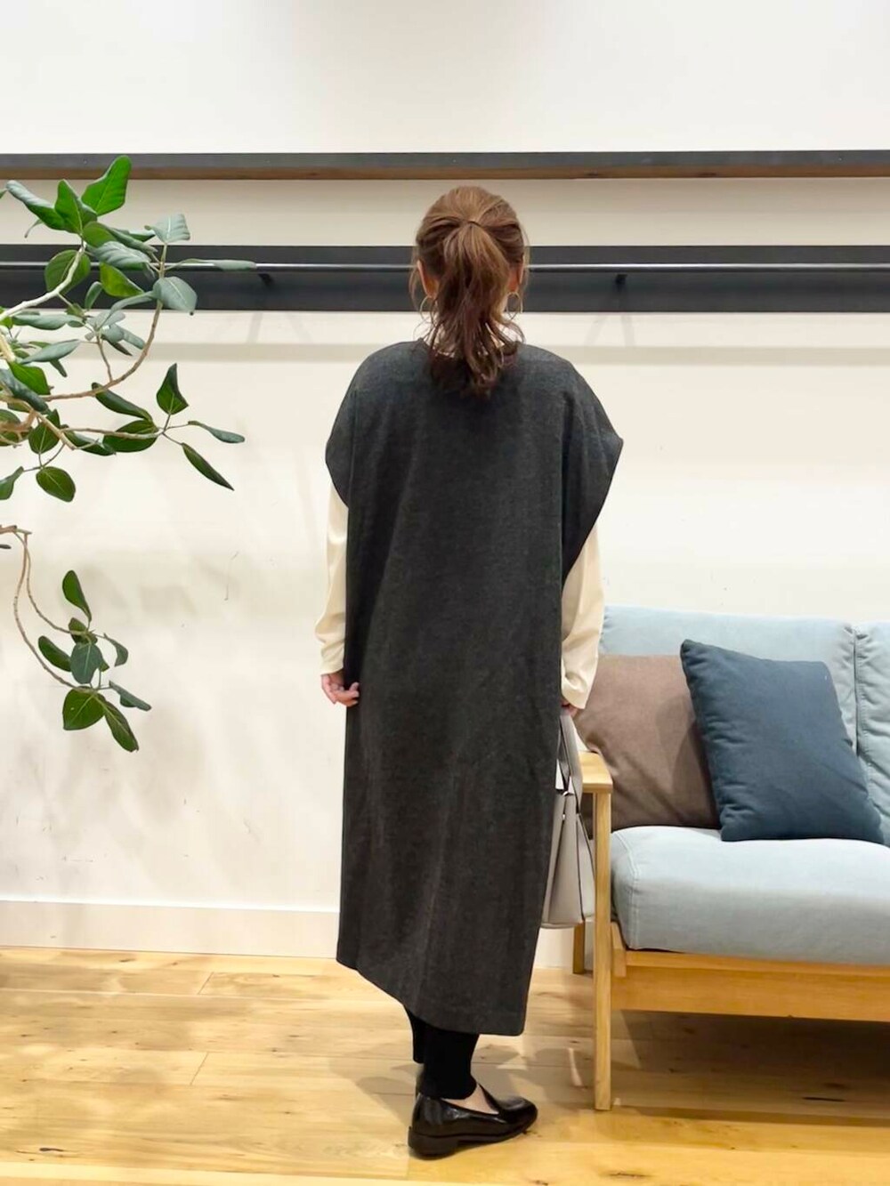 圧縮ウールがしっかり高級感もあり、長さもありますが小柄さんもパンツを重ねてもちゃんと見えて可愛くなる着丈です♪