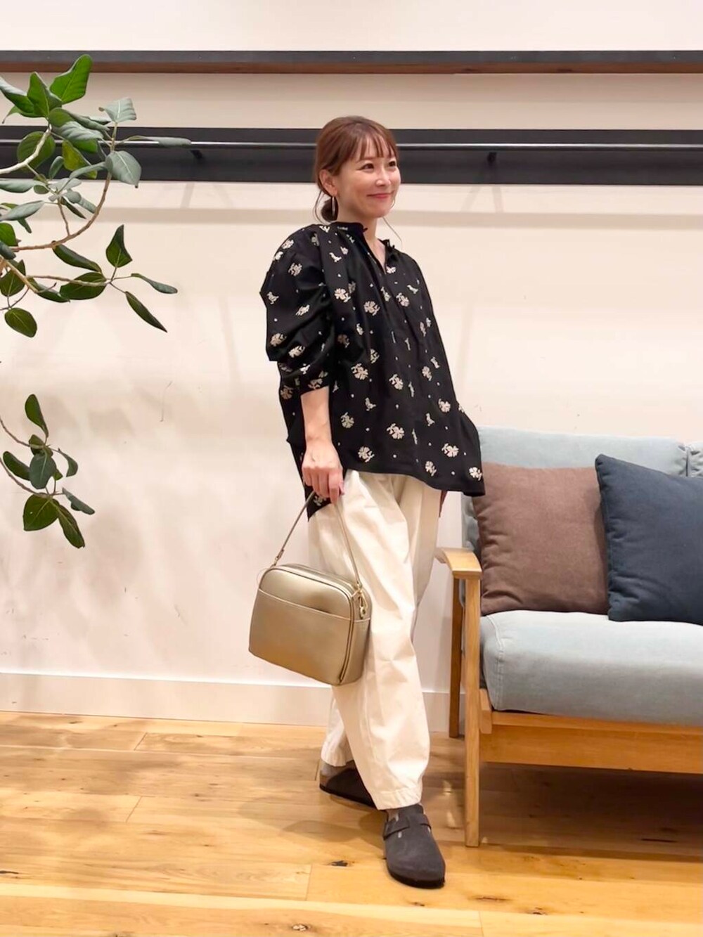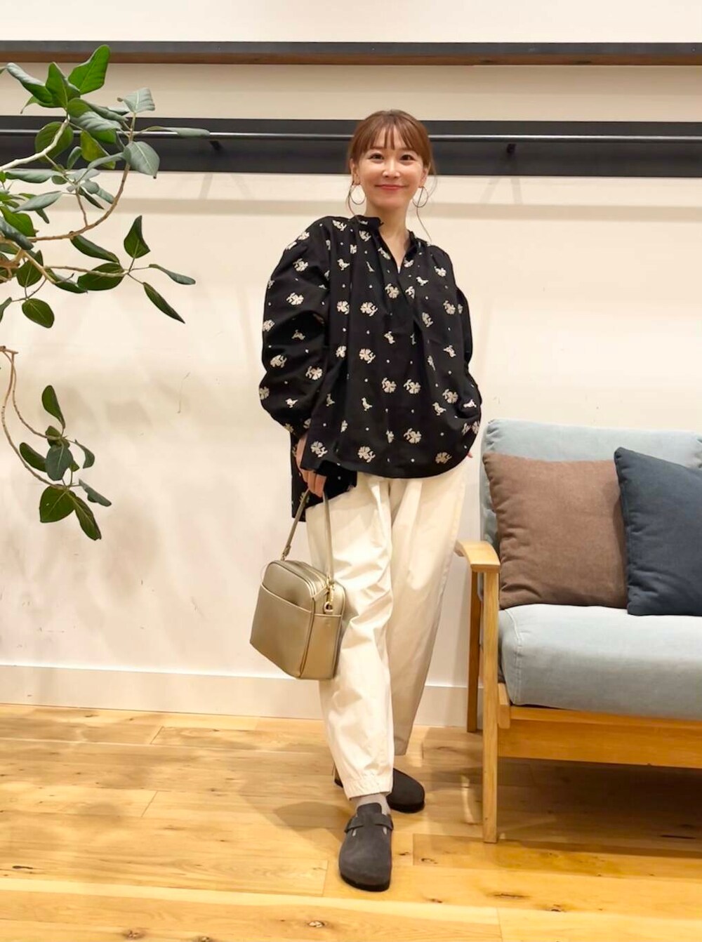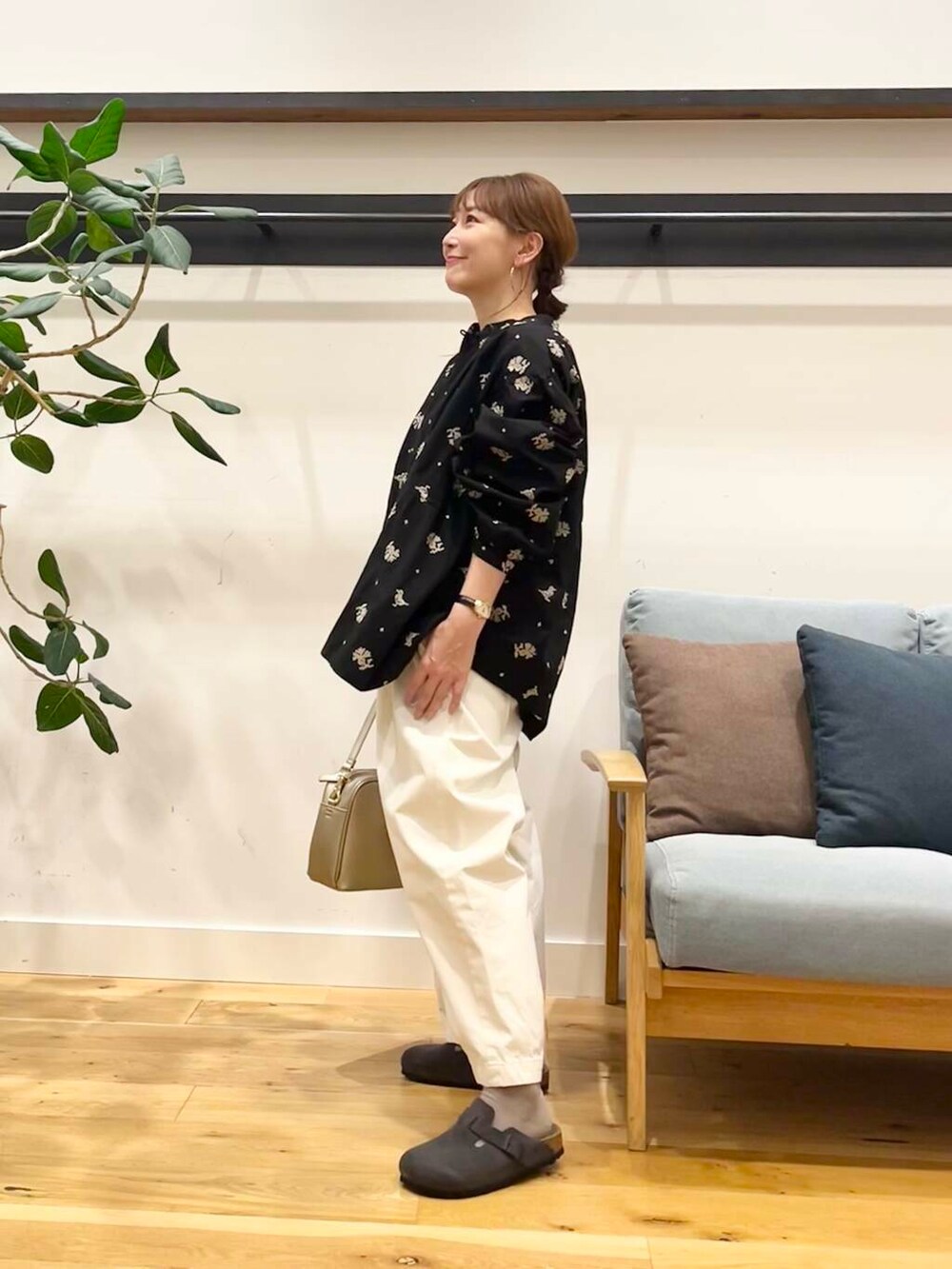合わせてるのは小柄さんにおすすめのかぐれのコットンクロップドパンツ。