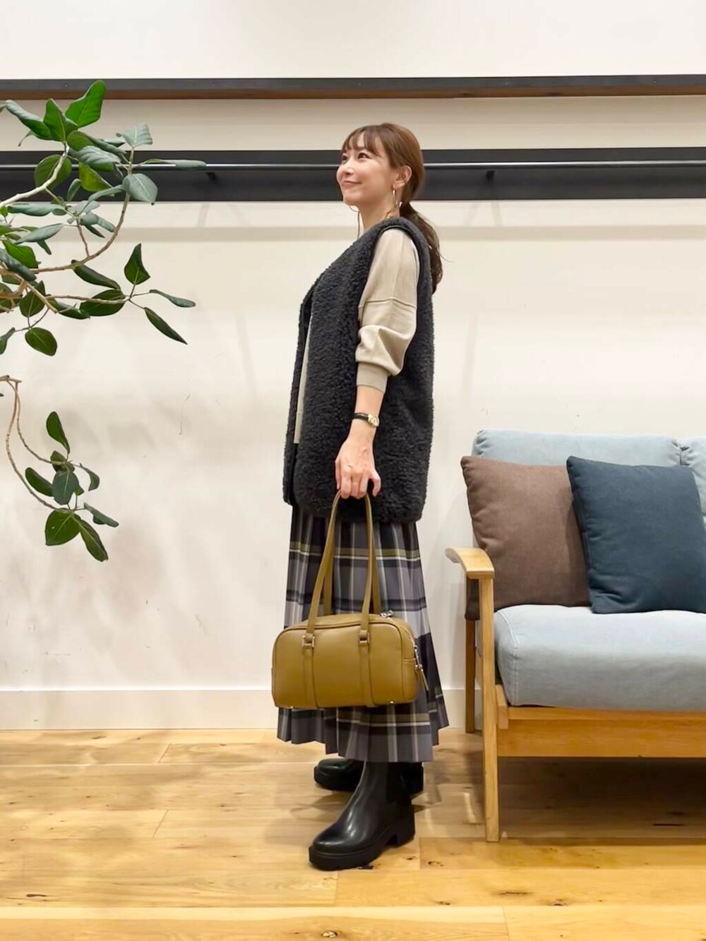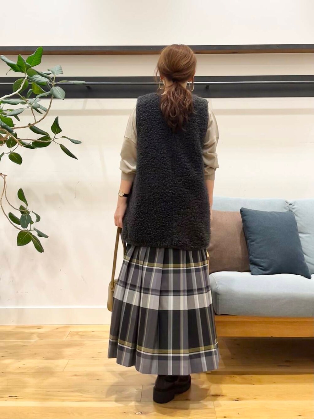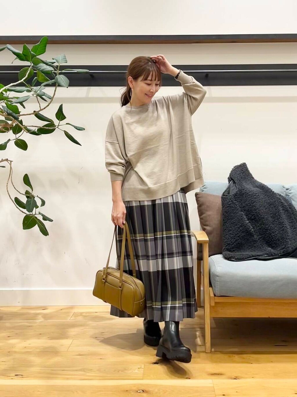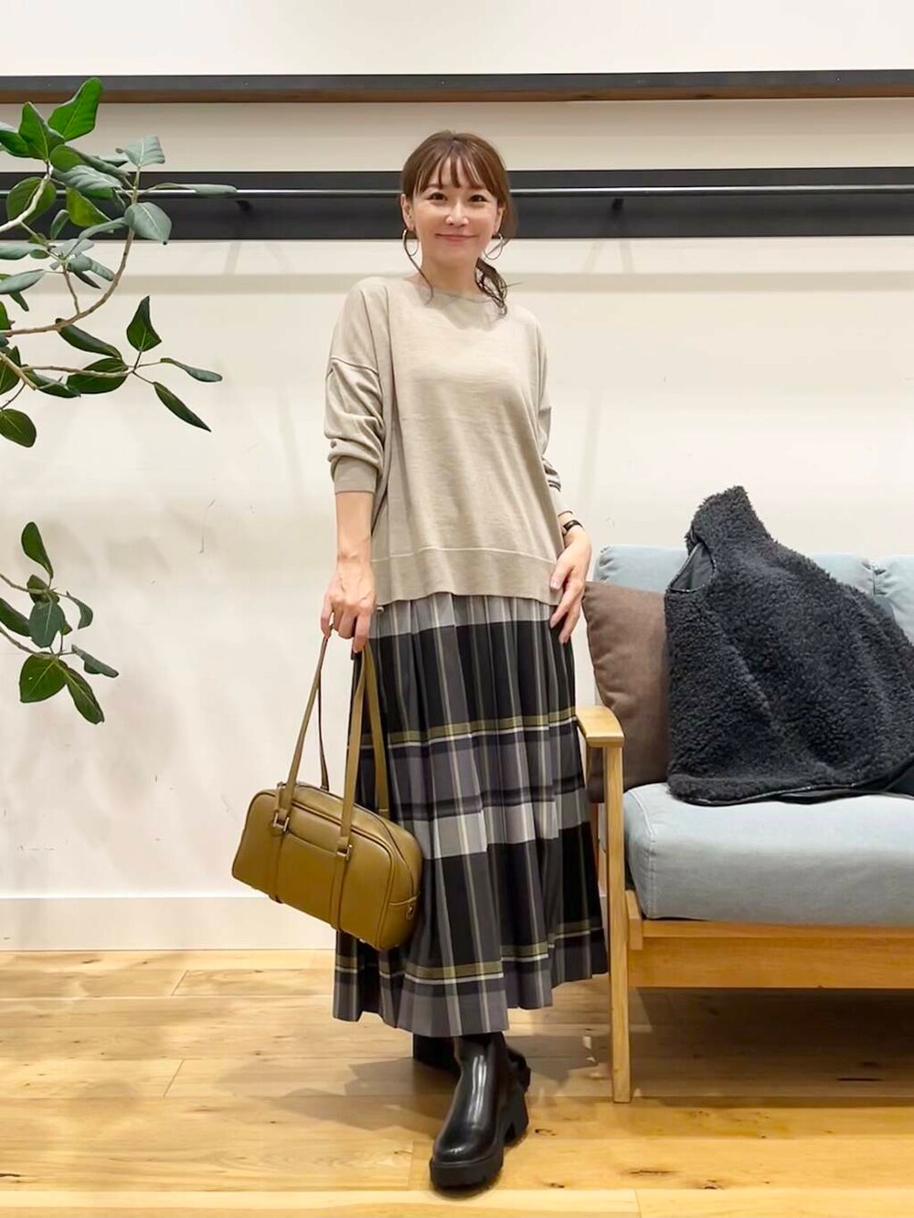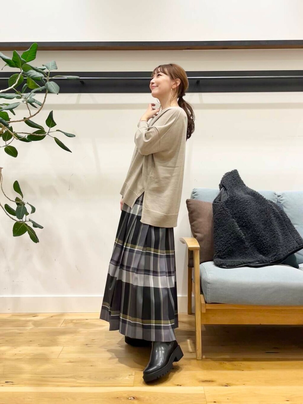 大きめのプリーツが広がりすぎず綺麗な落ち感が大人の女性にもバッチリ似合うこちら。
