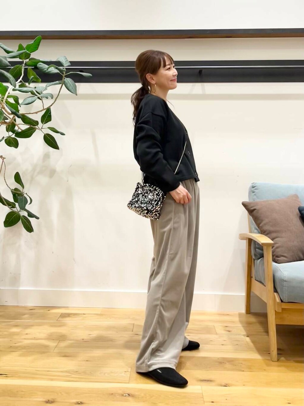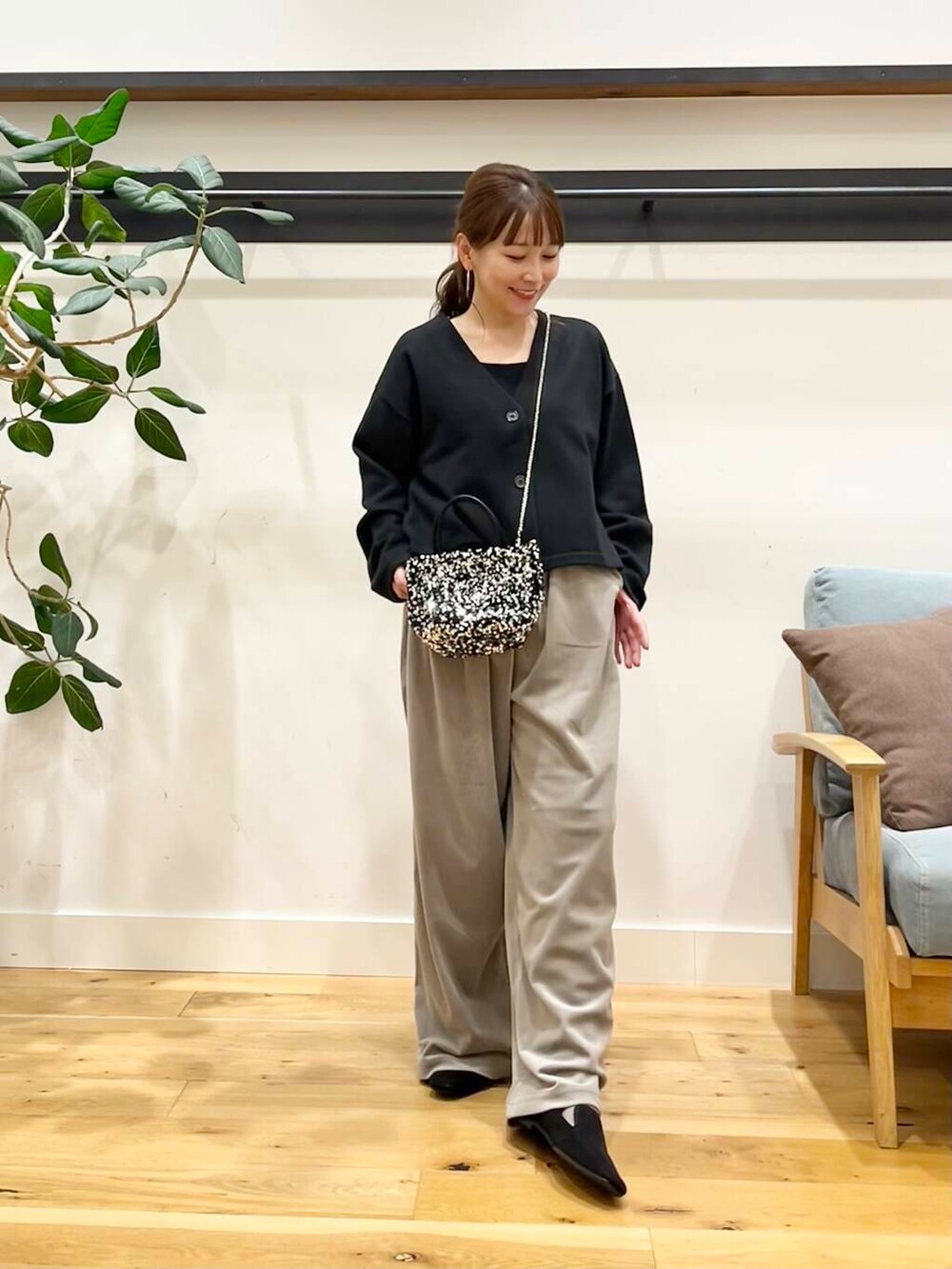 カーディガンはコンパクトな着丈なので、ワイドパンツやスカート、ワンピースにもバランス良く合わせていただけるシルエットです♪