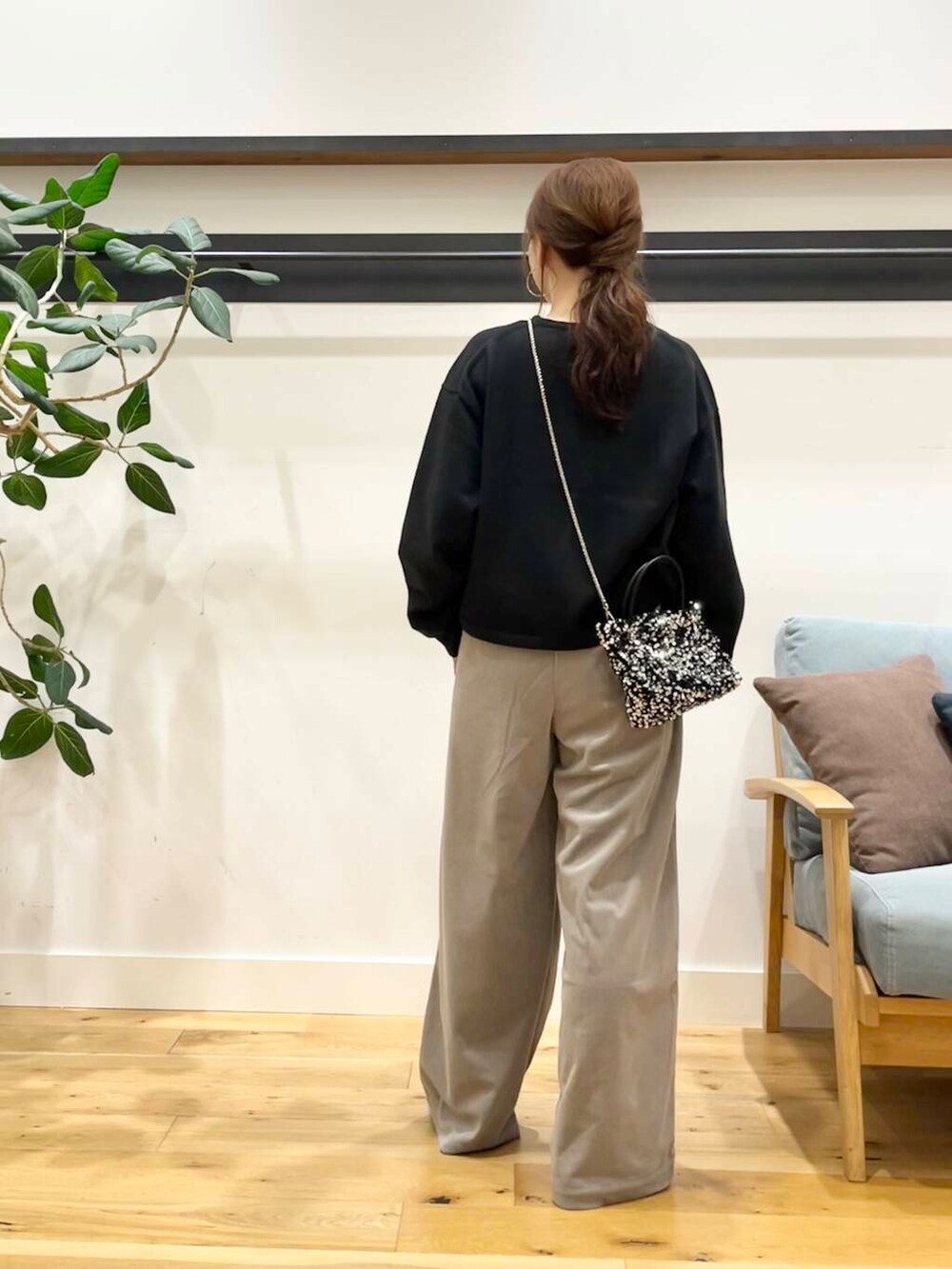 合わせてるのはベロアコールイージーパンツ。