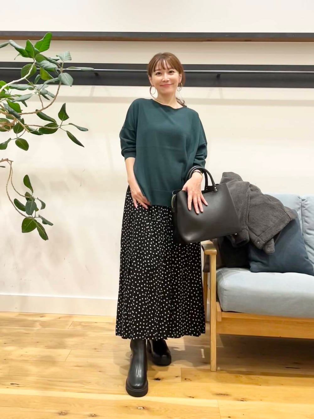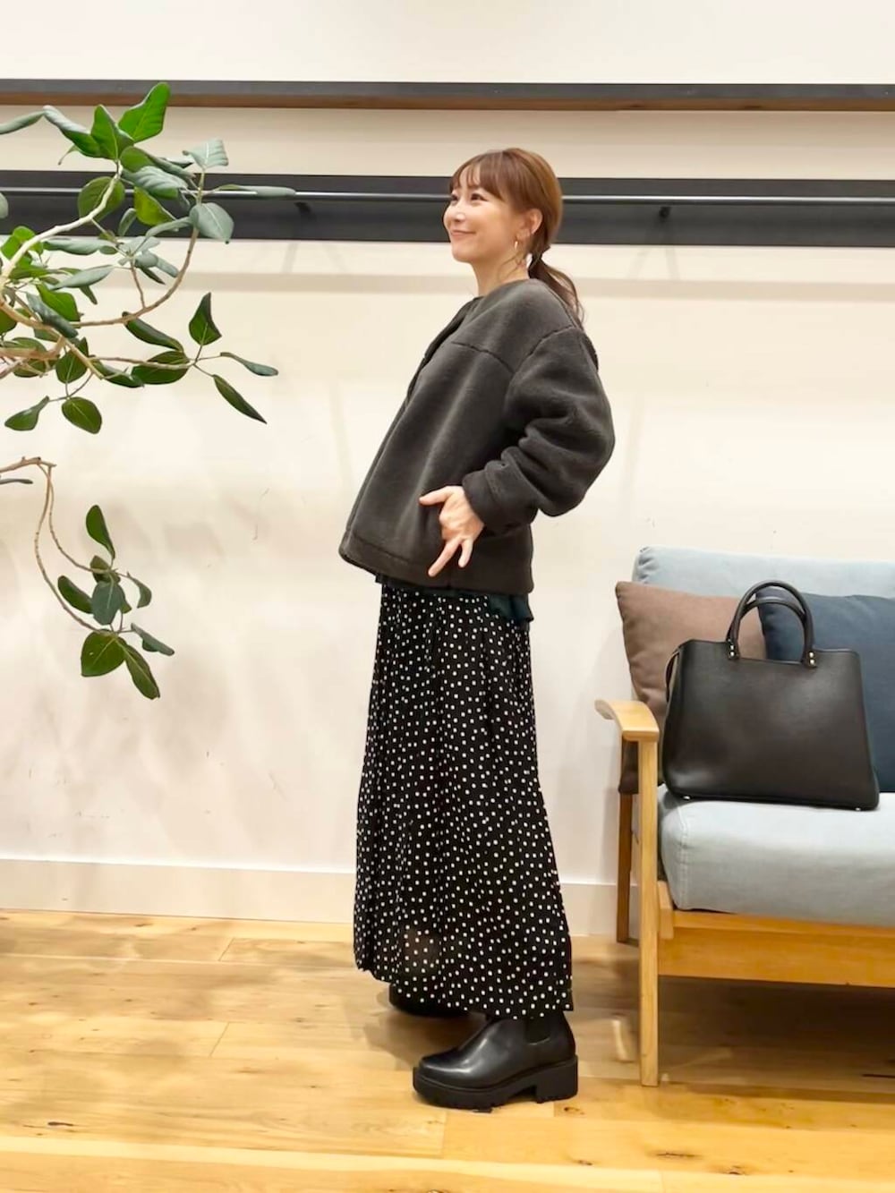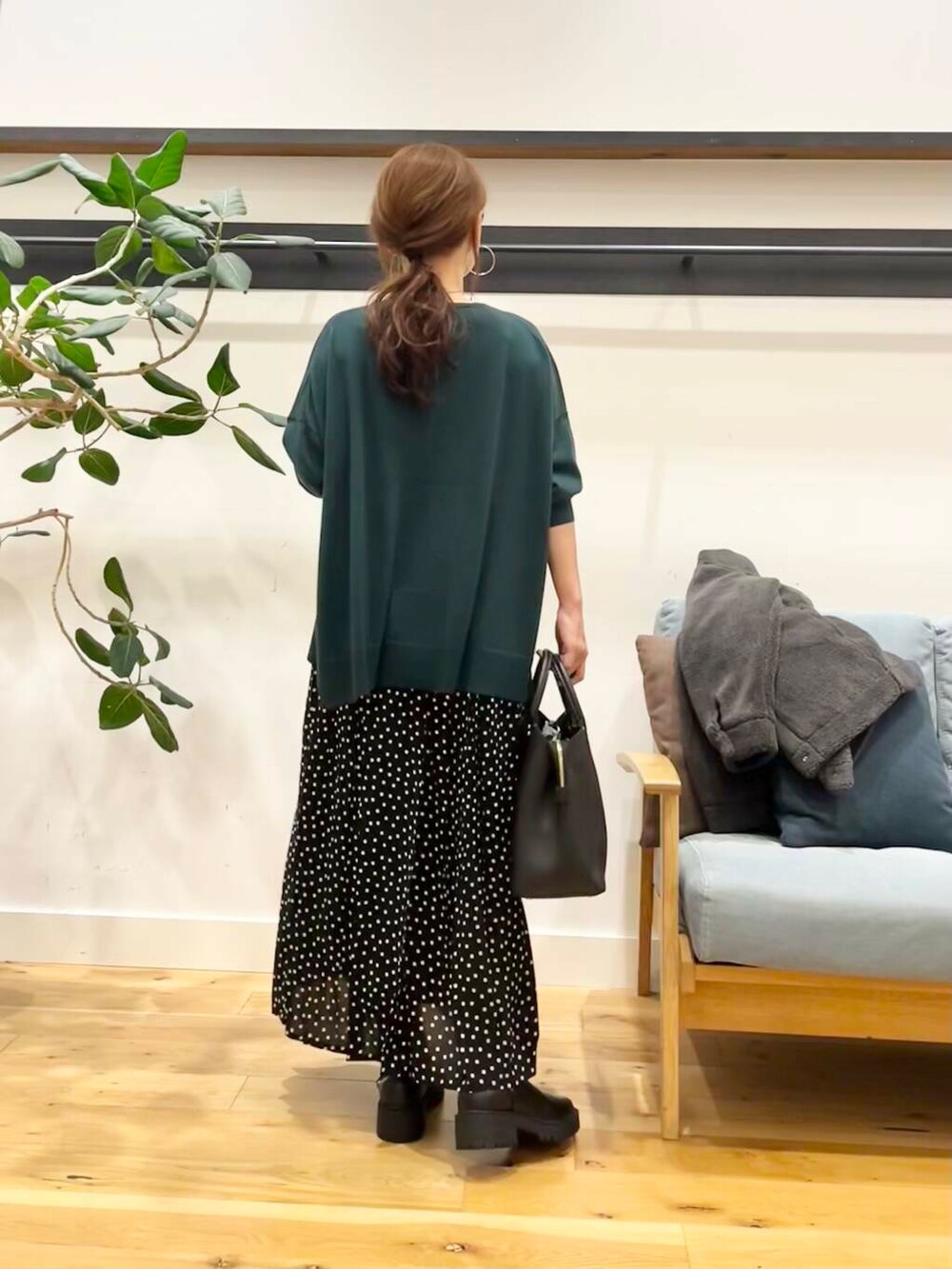 シンプルコーディネートでも適度に大きすぎず小さすぎずのドットがちゃんとポイントになってくれます。