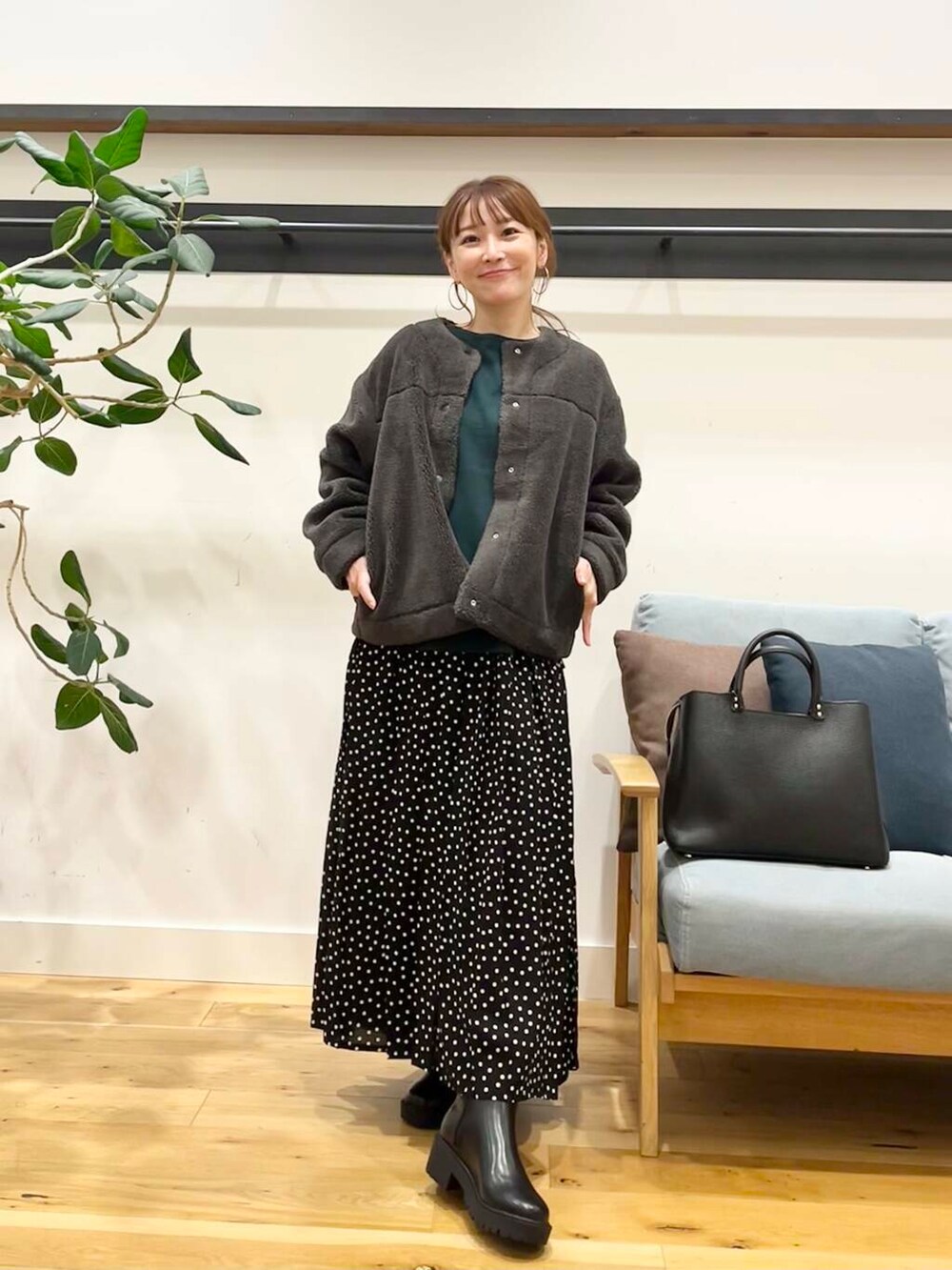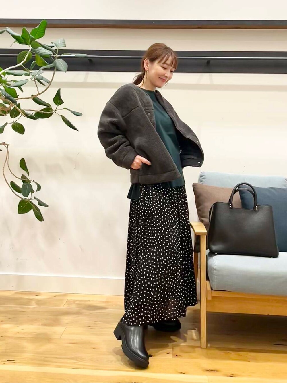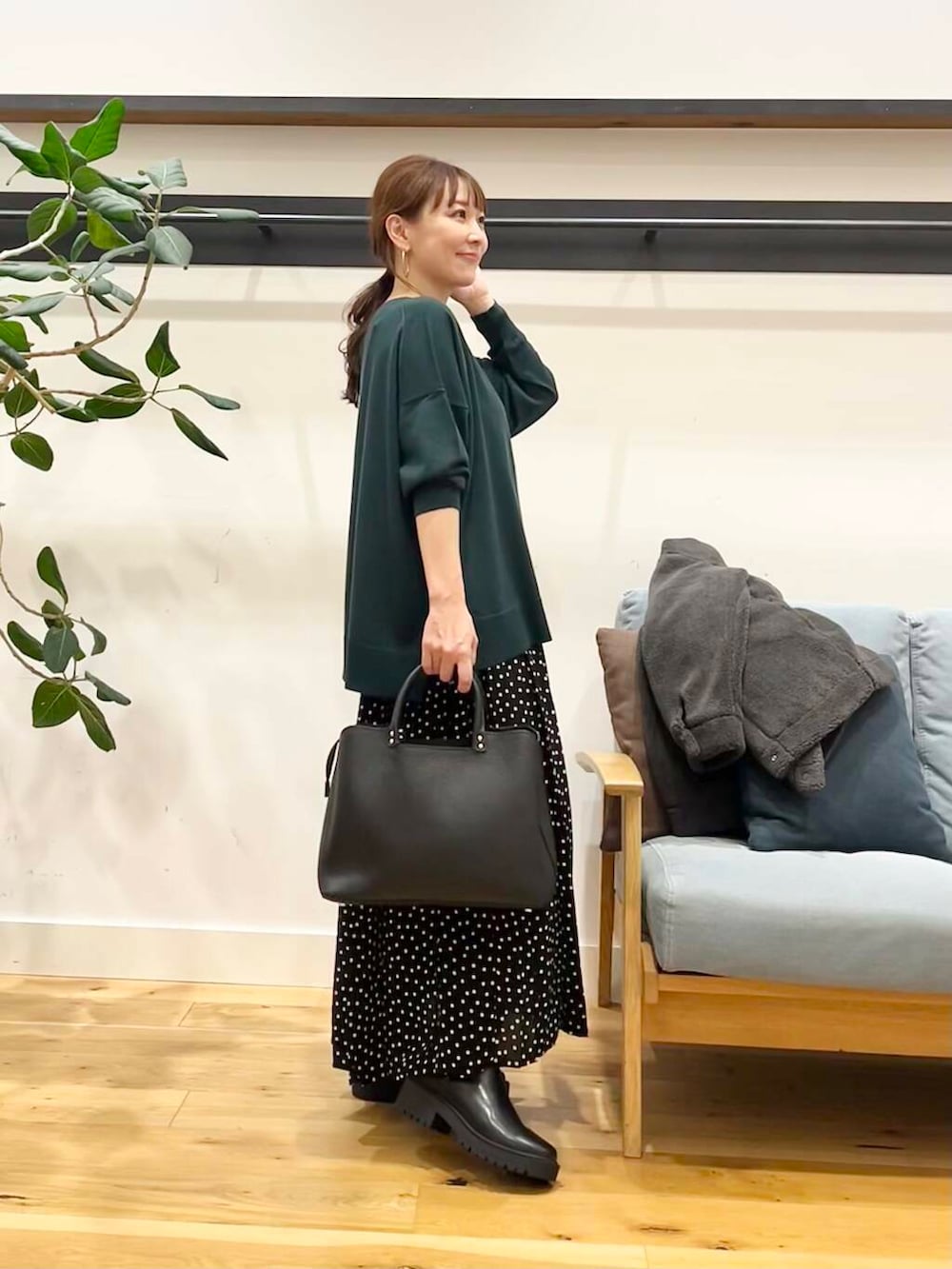 シンプルコーディネートでも適度に大きすぎず小さすぎずのドットがちゃんとポイントになってくれます。