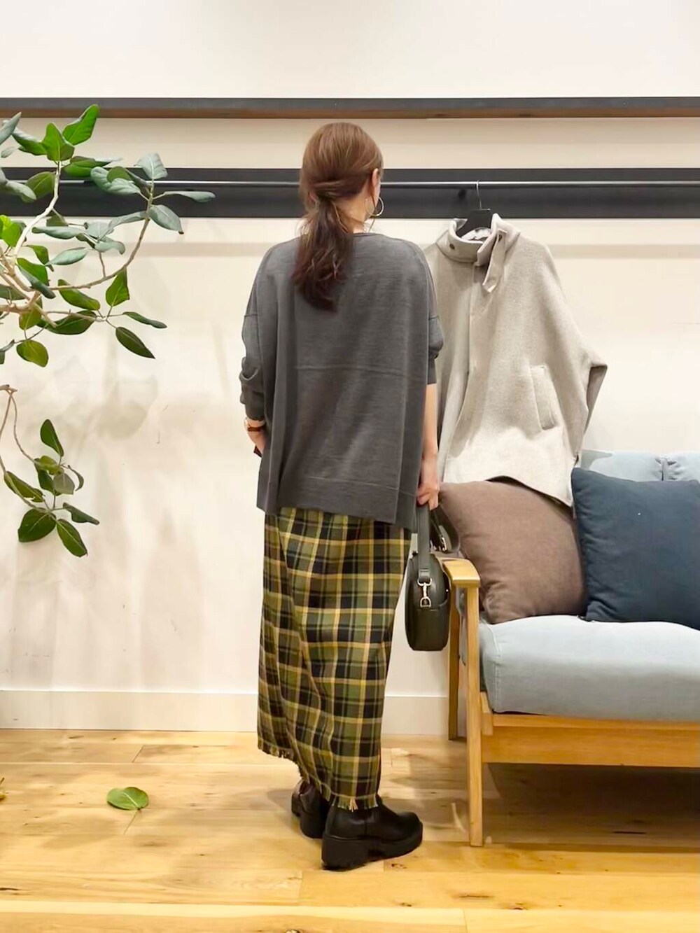 かなりワイドな形で体のラインを拾わないんですが、落ち感がとっても綺麗なのでそのままスルンと着れてまるでお肉まで落ちたようなスッキリしたシルエットになります。