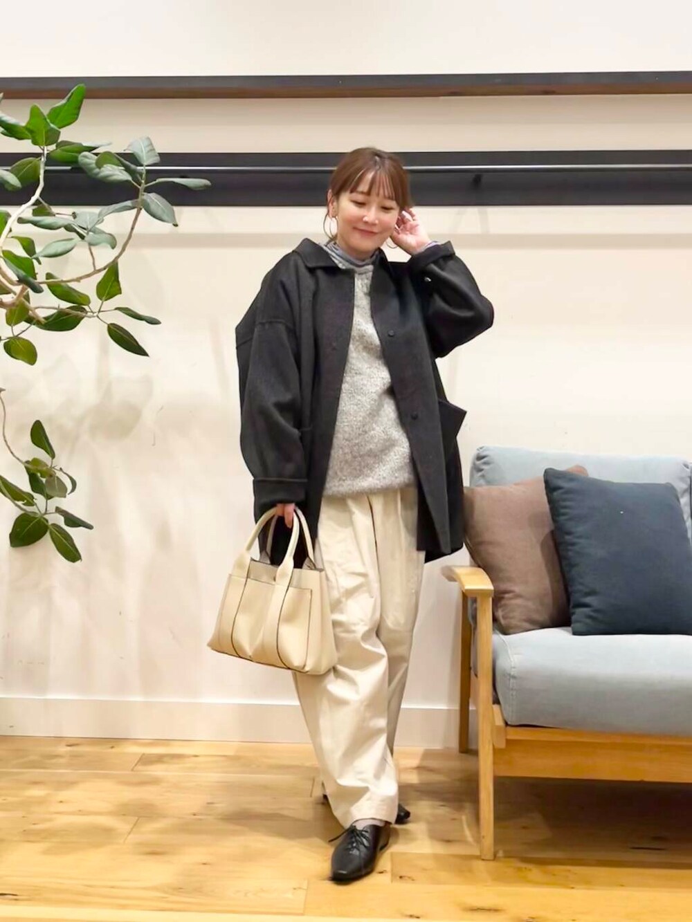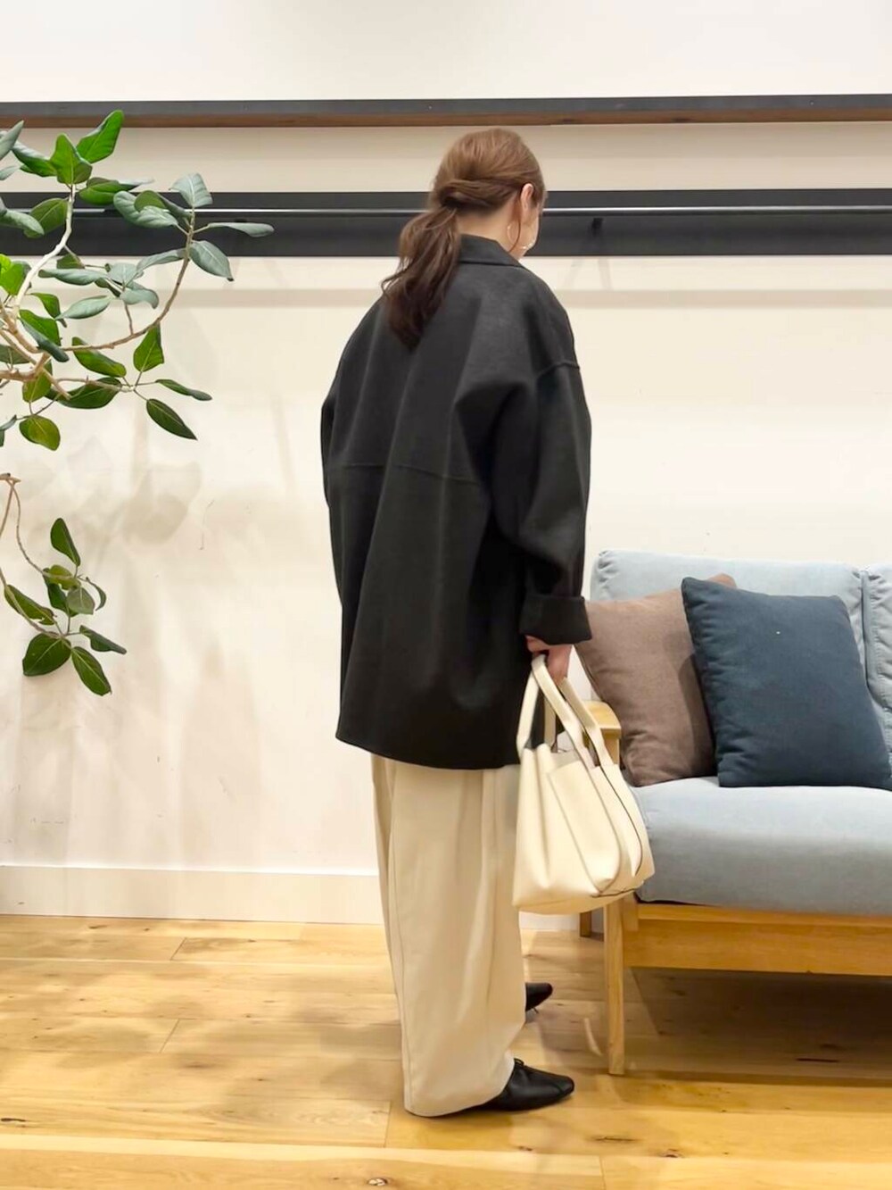 全体的にゆったりしたシルエットなので、厚めのニットの上からでも余裕で羽織りやすいサイズ感です。