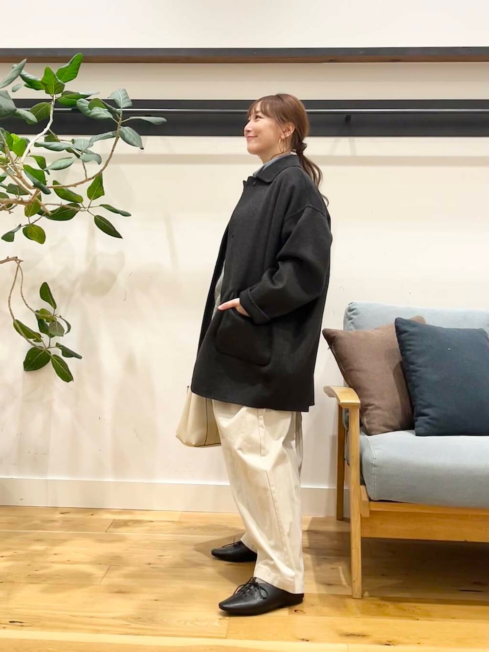 かぐれのウールステンカラーショートコートをアウターには着てます。