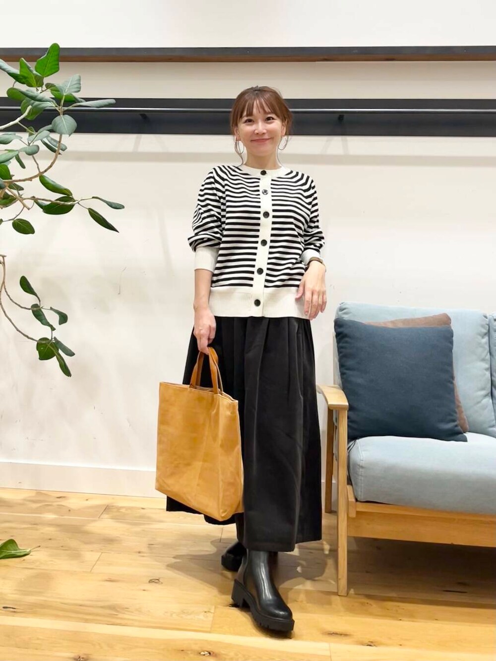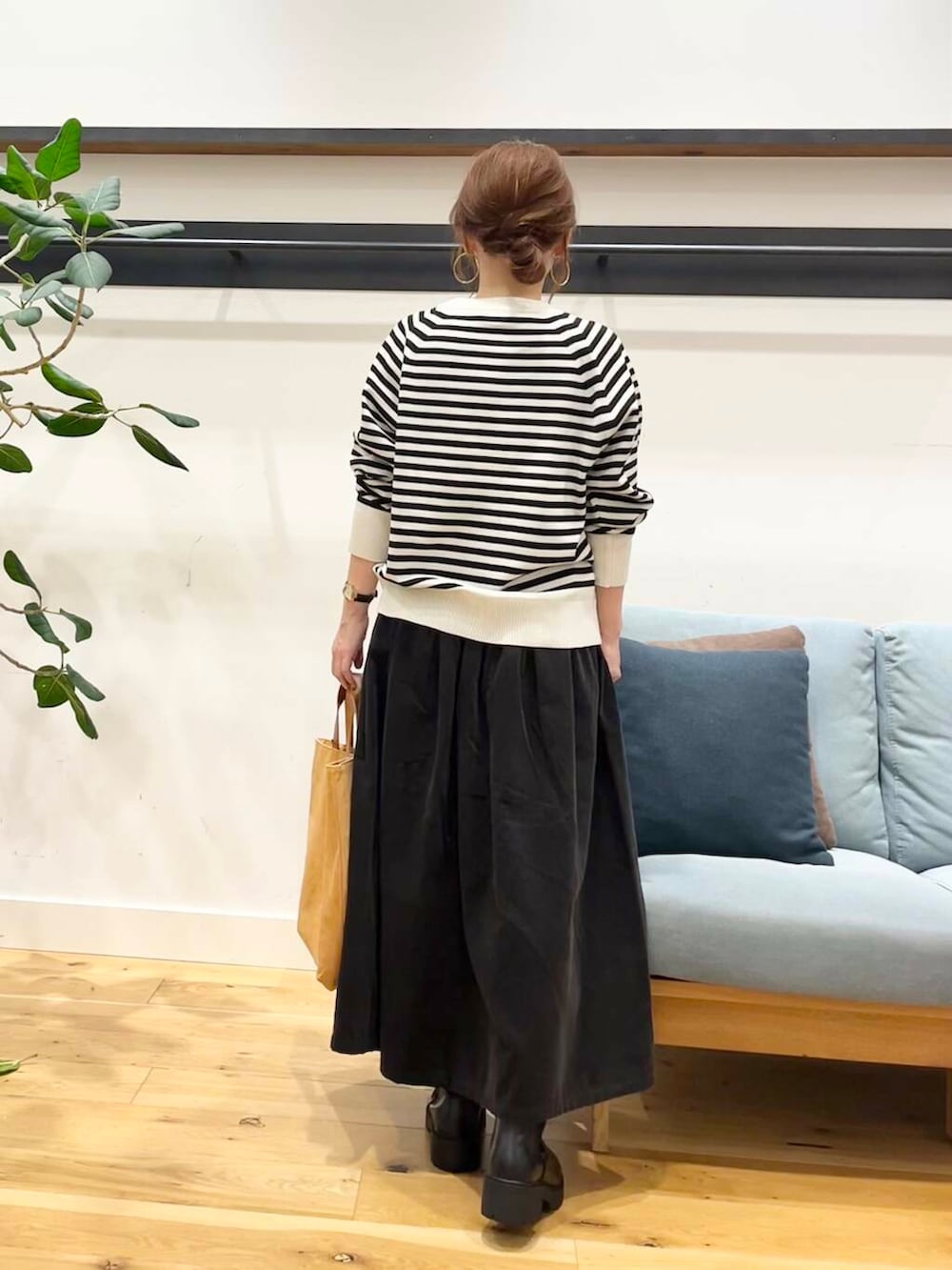FORK&SPOON コーデュロイスカート、チャコールのカラーを合わせてます。