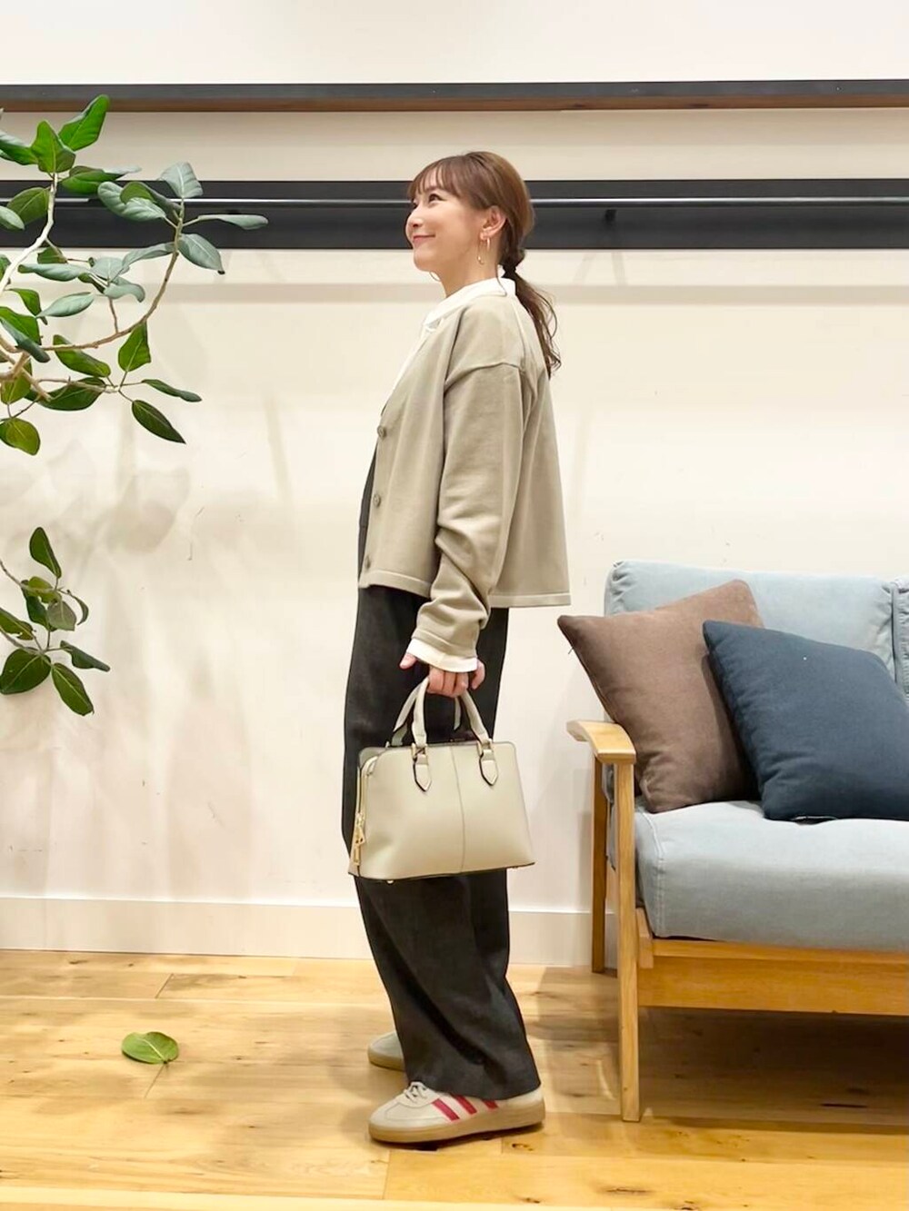 カーディガンはコンパクトな着丈なので、ワイドパンツやスカート、ワンピースにもバランス良く合わせていただけるシルエットです♪