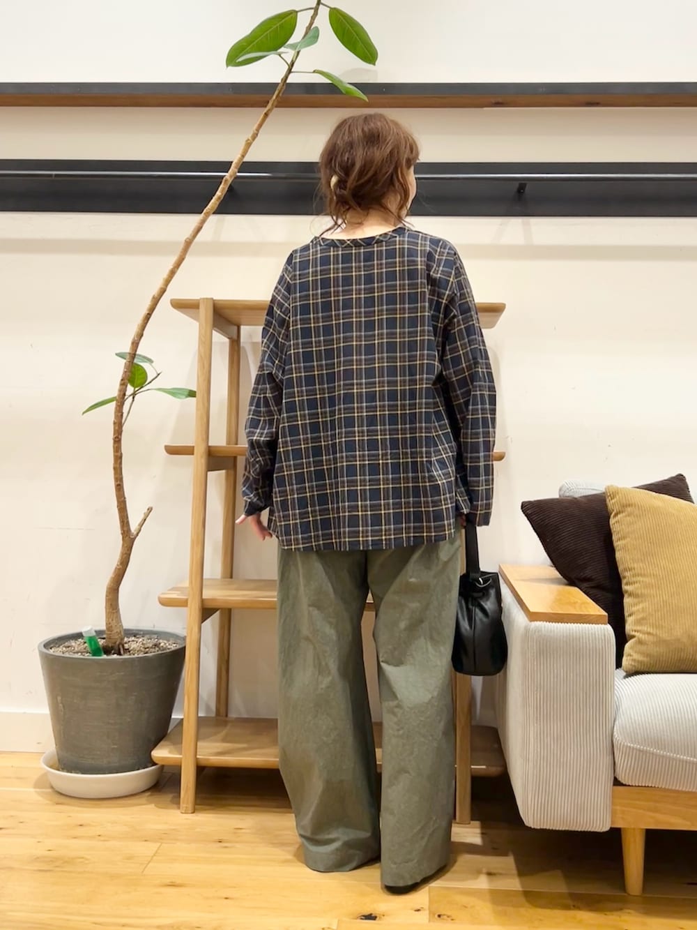 チェックってカジュアルな印象ですが、スッキリVネックのフレアシルエットなのでどことなく女性らしさもあるでございます。