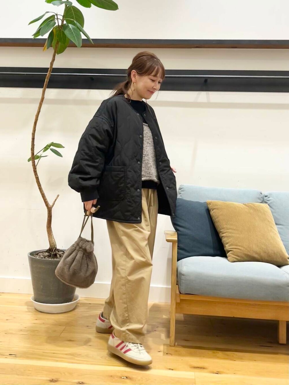 羽織った時のアーム周り、かなりゆとりあるのでドルマンスリーブの時やモコモコニットの上からでも余裕で着れる感じです♪