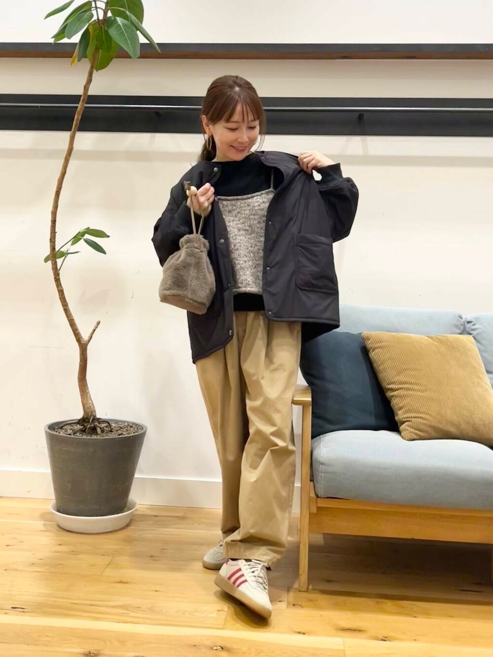 中に着てるボートネックワイドリブニットはやわらかくてチクチクしないのでかなり着心地良しです。