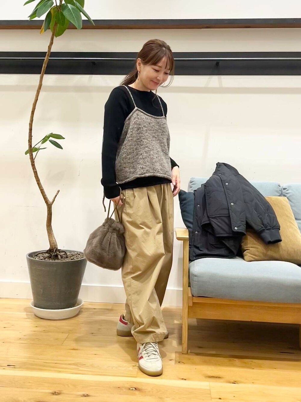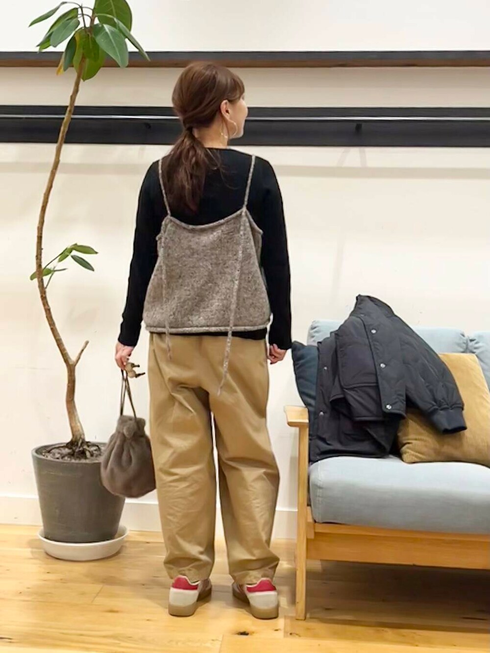 そしてかぐれのコットンクロップドパンツのベージュ!いいですよ♡ 私は白もベージュも絶賛愛用中です。 クロップド丈なので本来はちょっと短めの作りですが小さい方ならちょうどの着丈になってしまうこちら。 本来のクロップド丈で使いたい時はウエストひとつ折ってそのぐらいになります。(151㎝) かなりのゆったりシルエットなので寒い日は下にタイツとか履いたら全然使えるので、これから秋冬のトップスに合わせていくのも楽しみですね♪