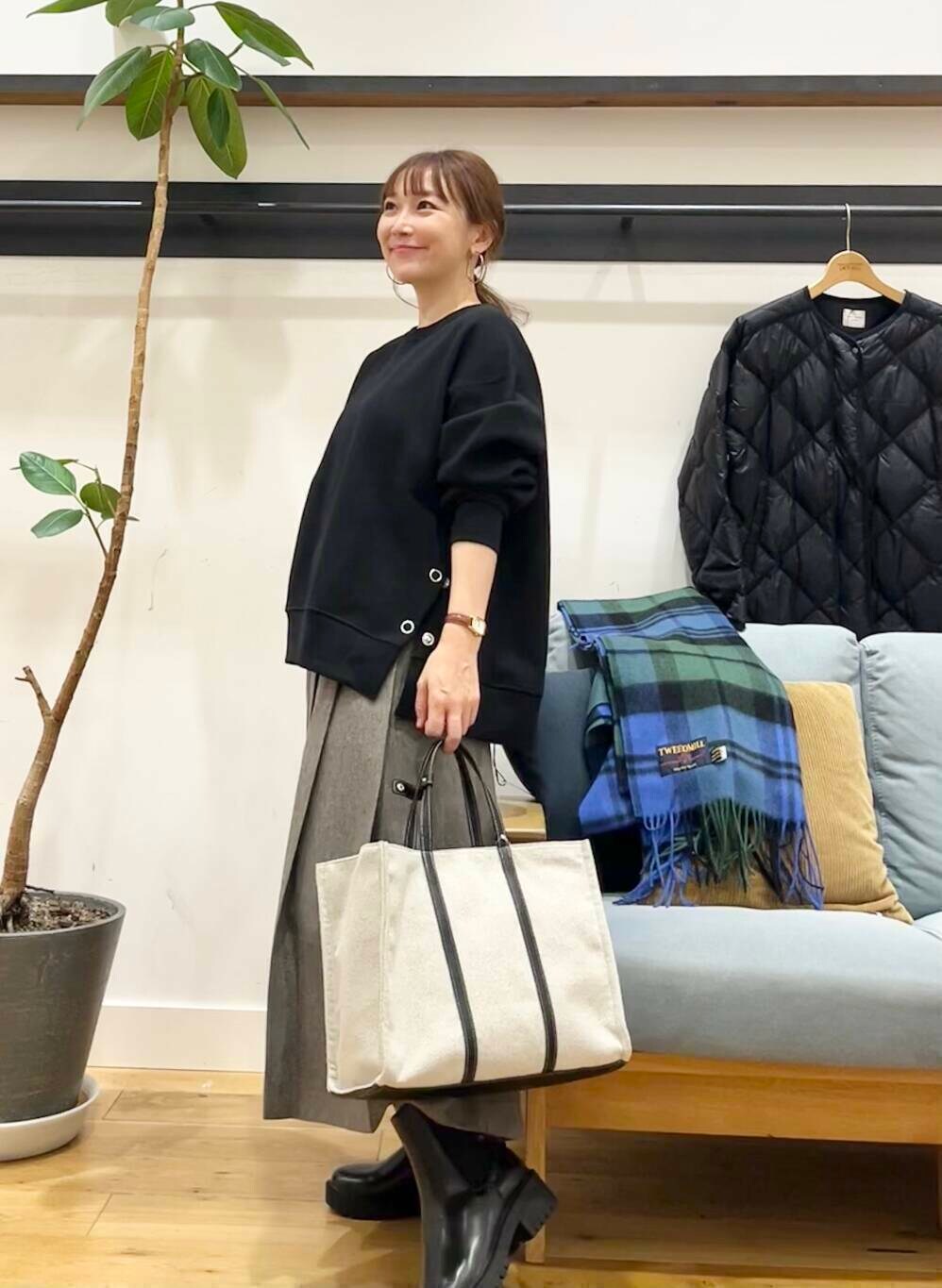 太めのプリーツだったりサイドのボタンだったりウールライクな生地感だったりが、いつもと違う感じの個性を出してくれます♪