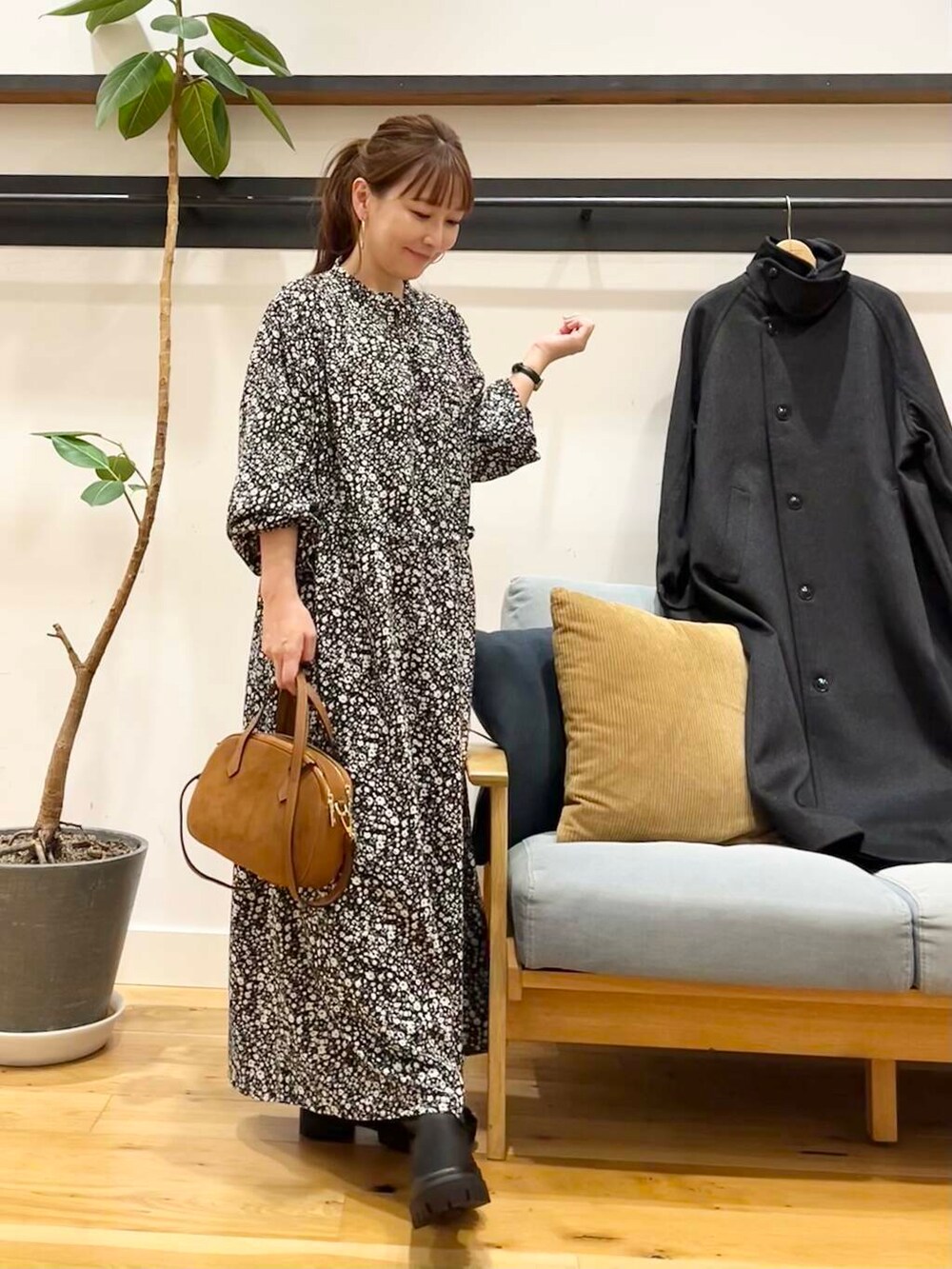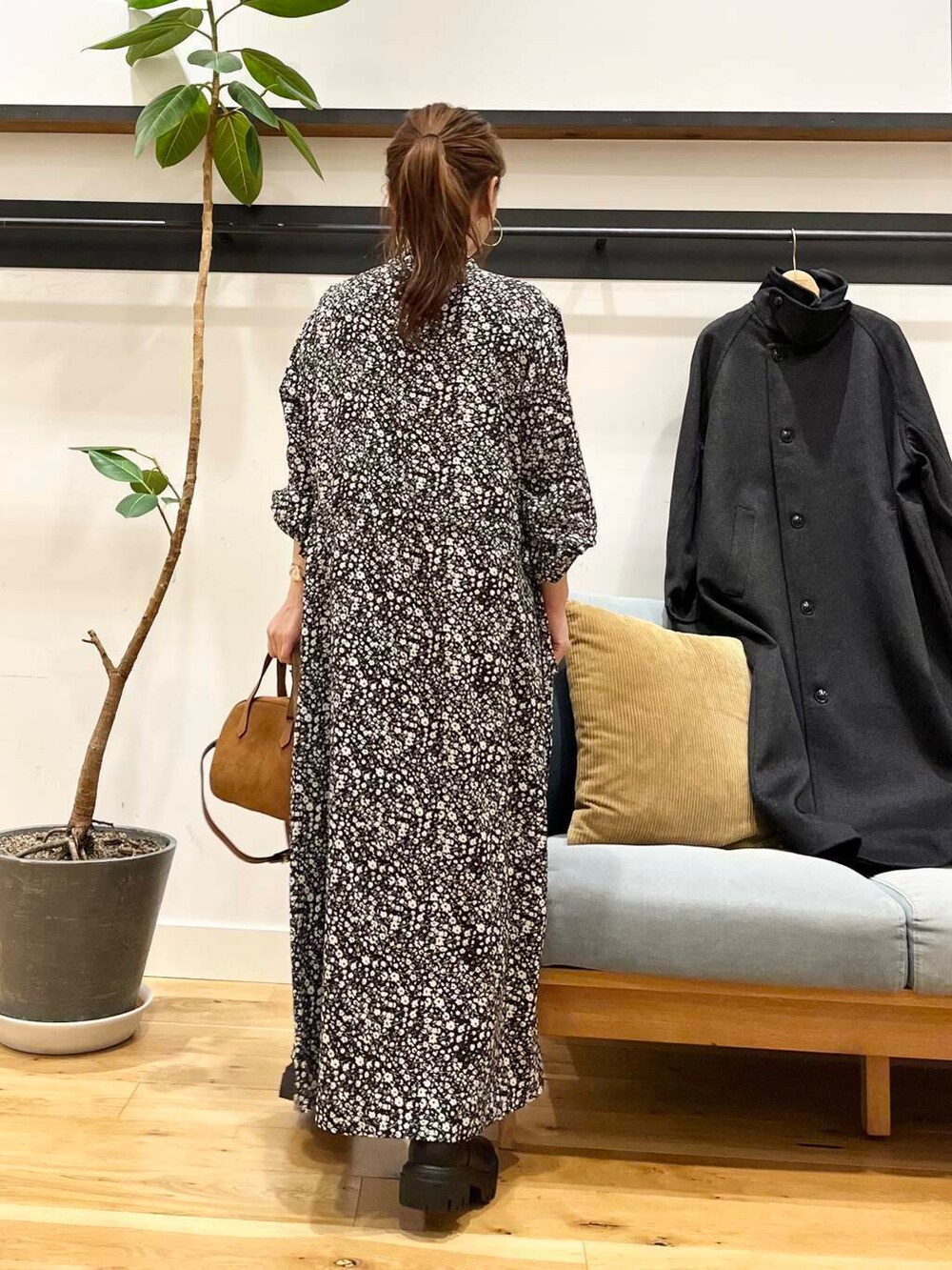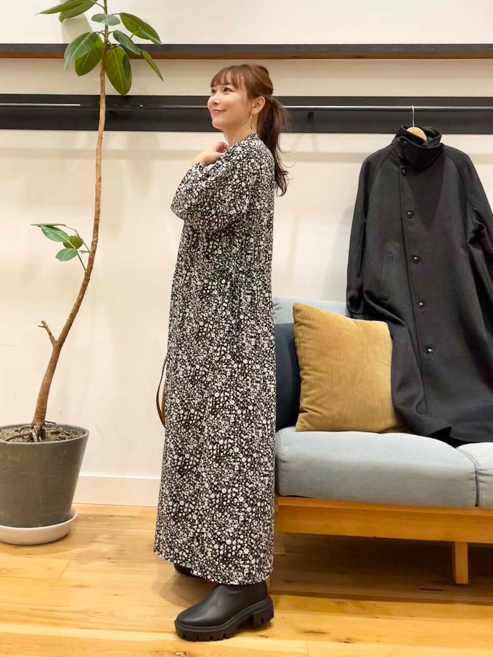 小さいお花が沢山散りばめられた可愛いデザインですが、モノトーンと綺麗な落ち感、そしてたっぷりの着丈が大人っぽい印象です。