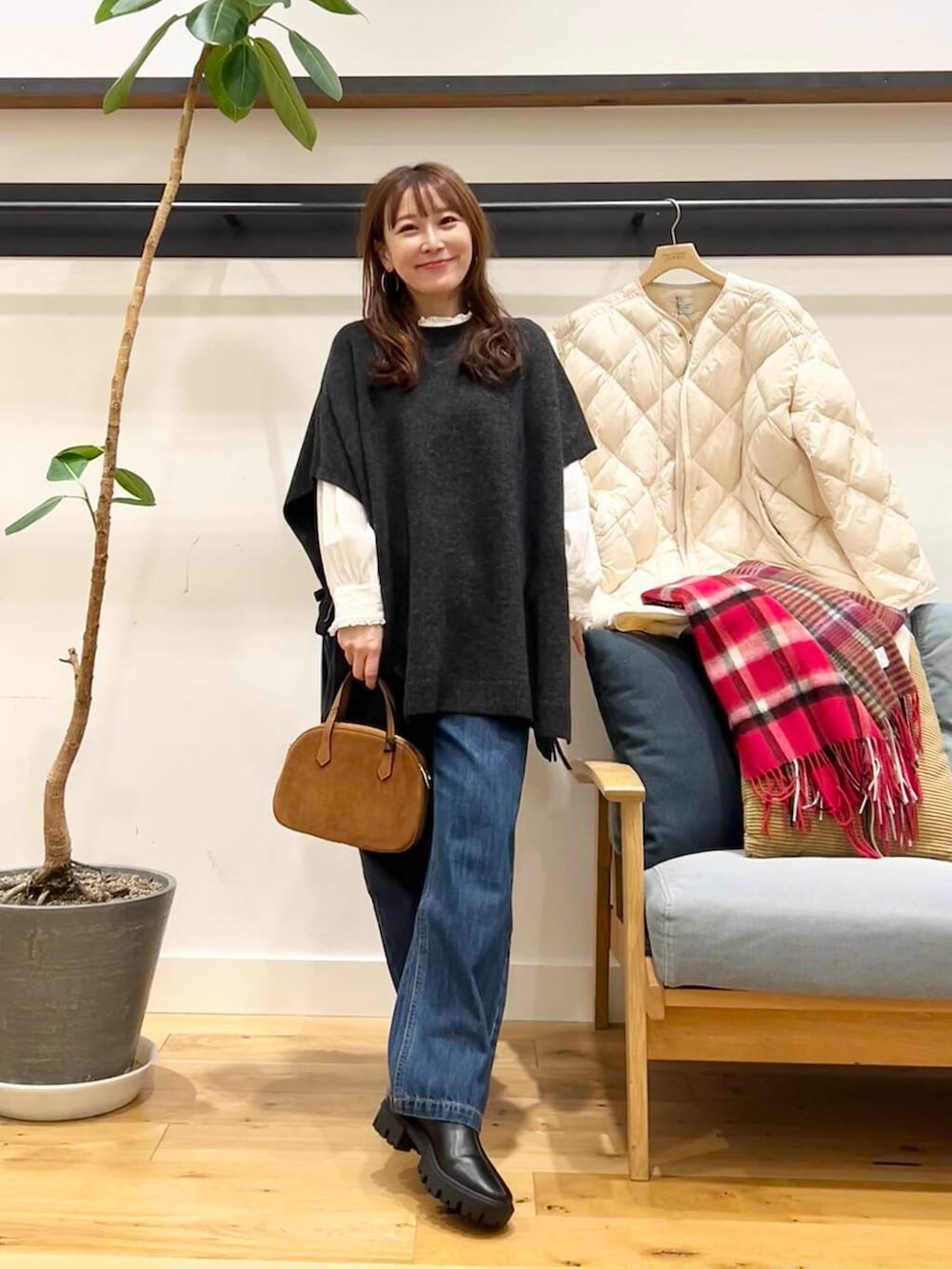 ウールがとってもあったかですが、チクチク感がなく、そしてなによりニットなのに落ち感が綺麗ですっきり着れます!