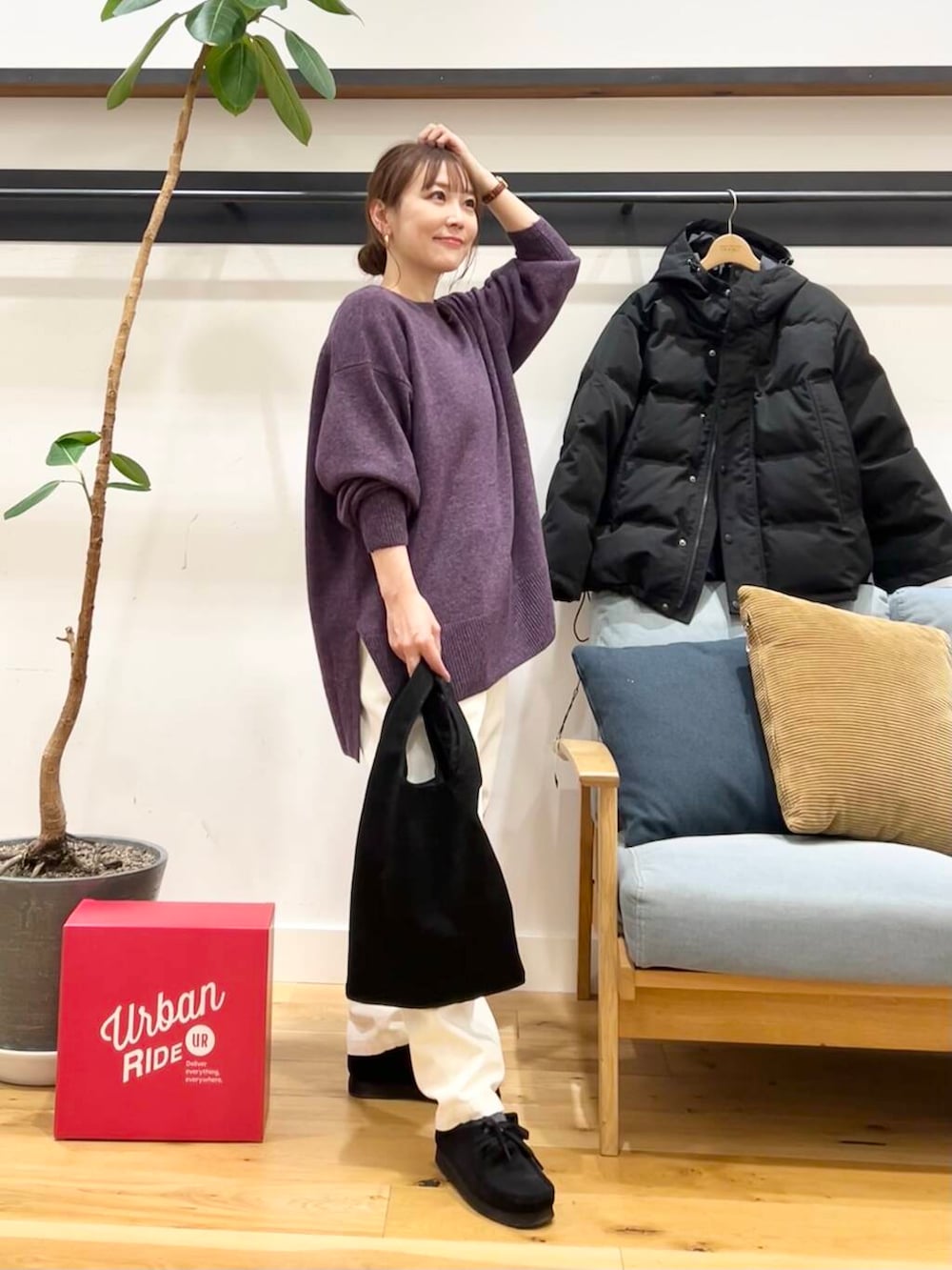 クルーネックとニットなのに綺麗な落ち感が出るので着膨れしないのがとっても良い感じです◎