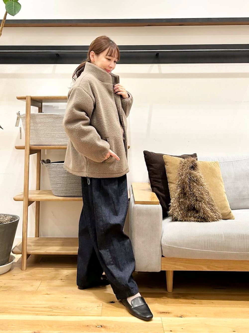 カジュアルにささっと着れるボアのアウターは、コートより気軽に、車移動やなんかでダウンを着るほどでもない…って時に一枚あるととっても便利なアイテムです♪