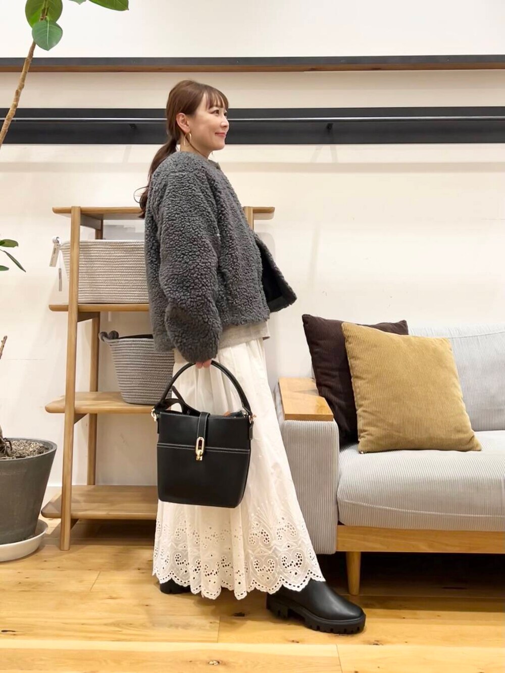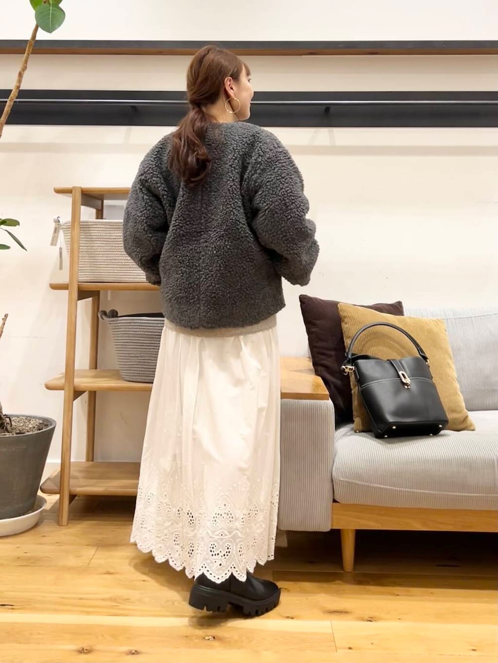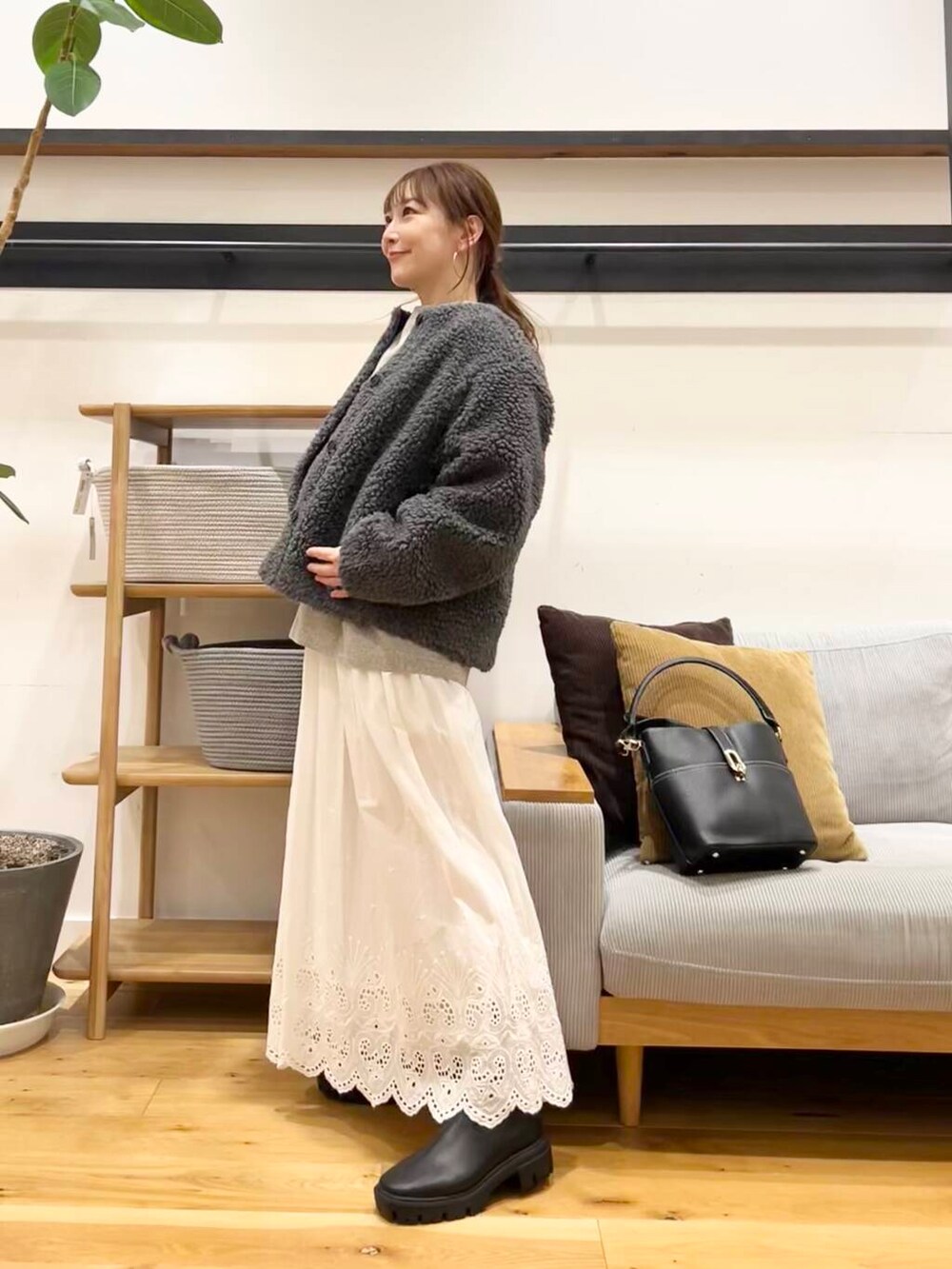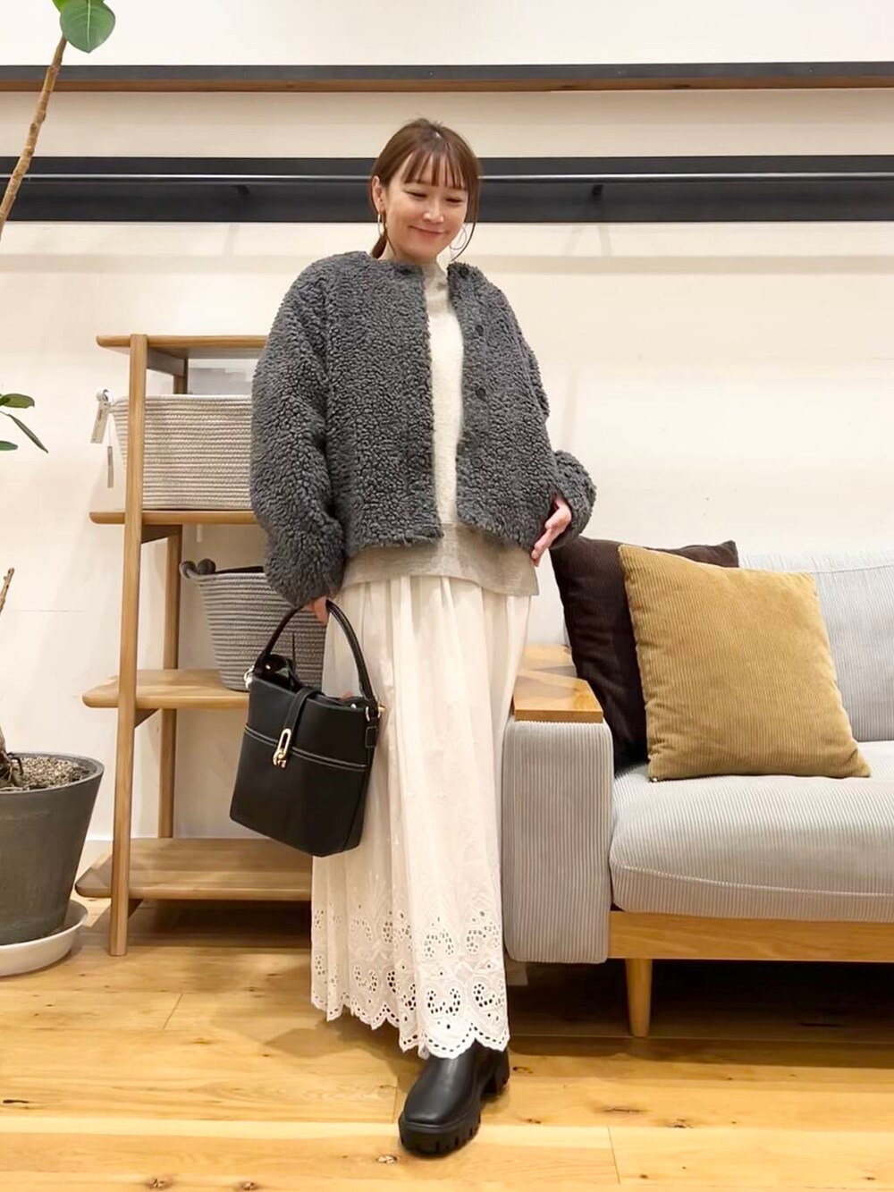 アウターにはめっちゃあったかいかぐれのウールボアジャケットを合わせました