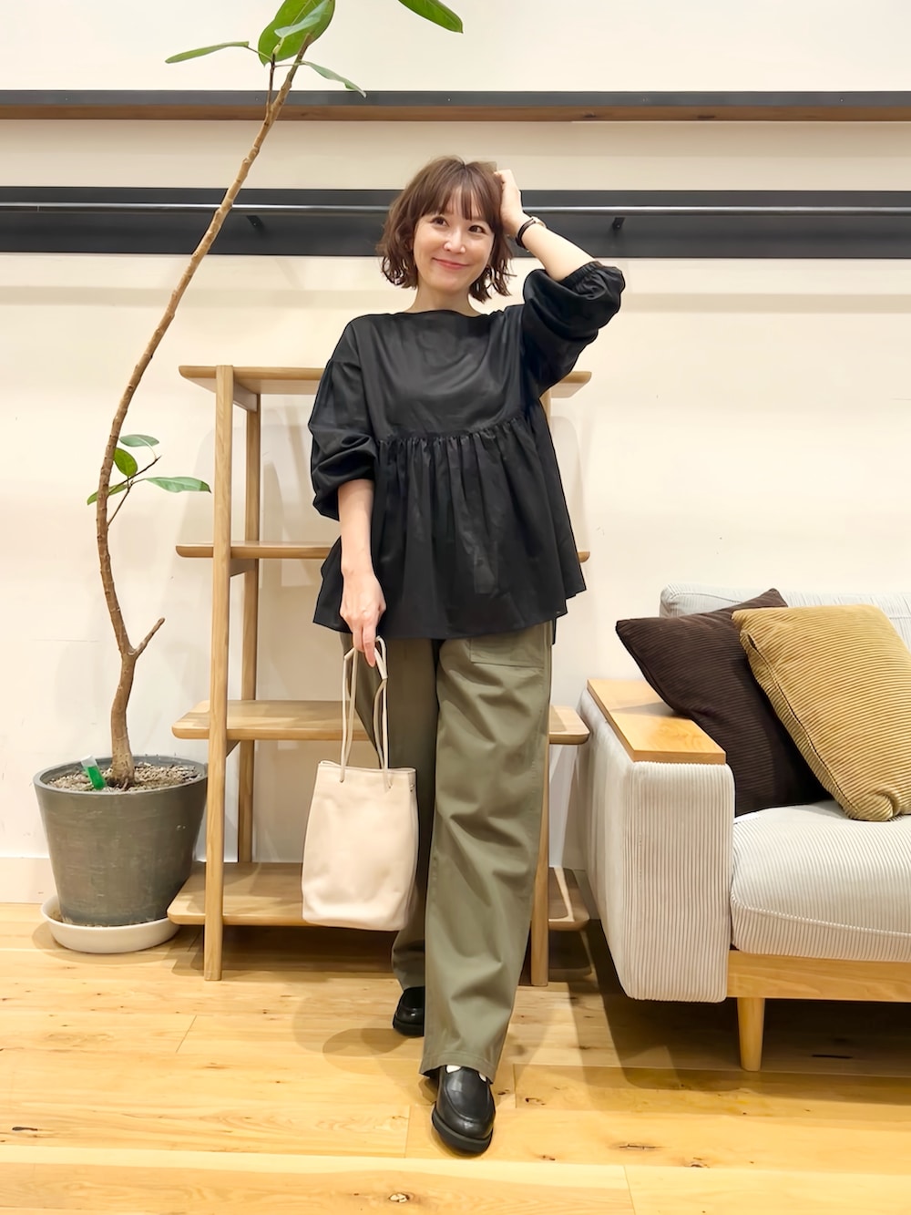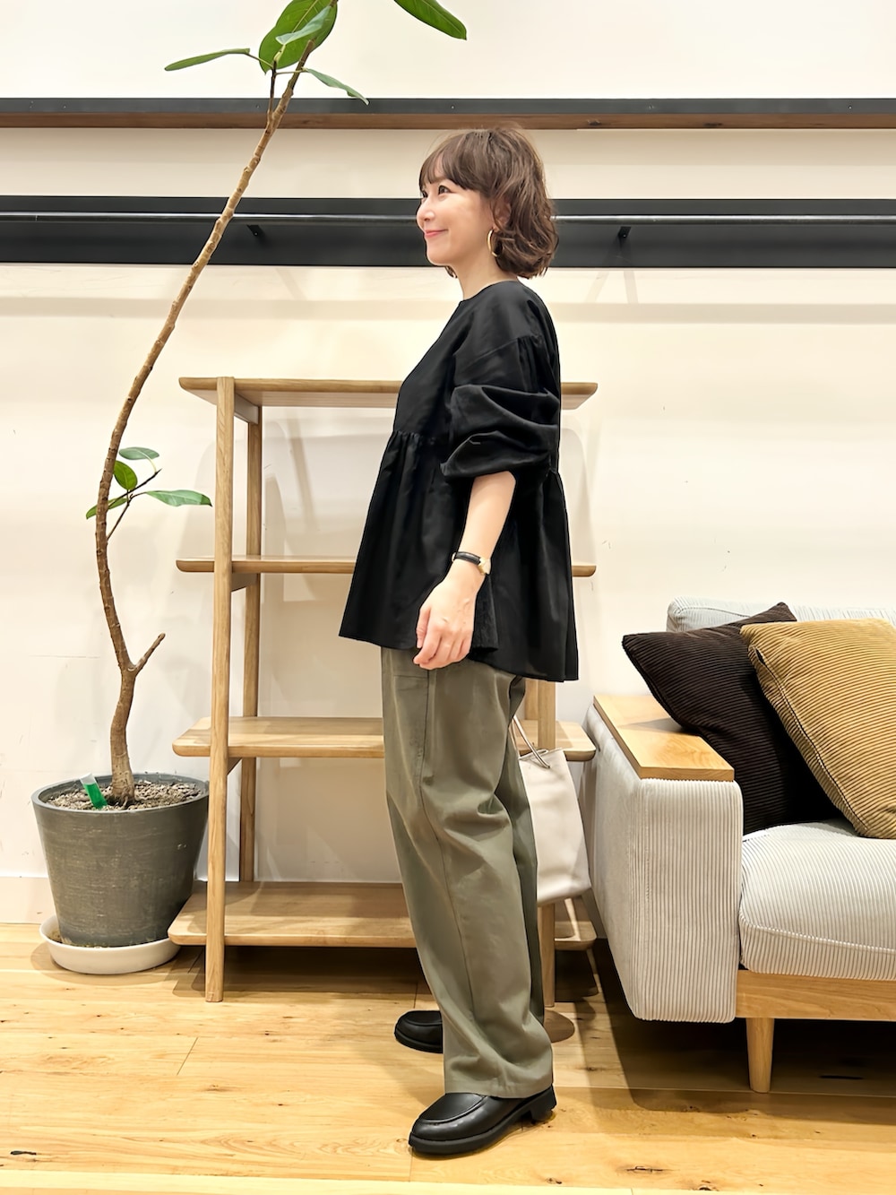 イージーパンツでカジュアルにはもちろん、案外綺麗めトップスにも合わせやすく着回し力抜群です。