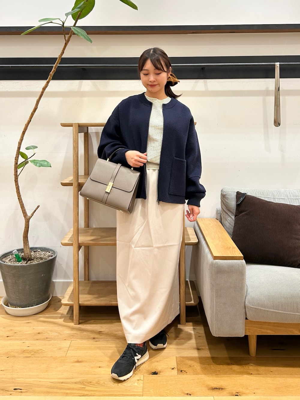 お店でも人気のニットZIPブルゾンは、ふんわりシルエットの袖とスッキリボリューム抑えた肩周りのバランスが綺麗なアイテムです。気温10℃代の羽織にぴったりなので在庫あるうちにぜひ✨
