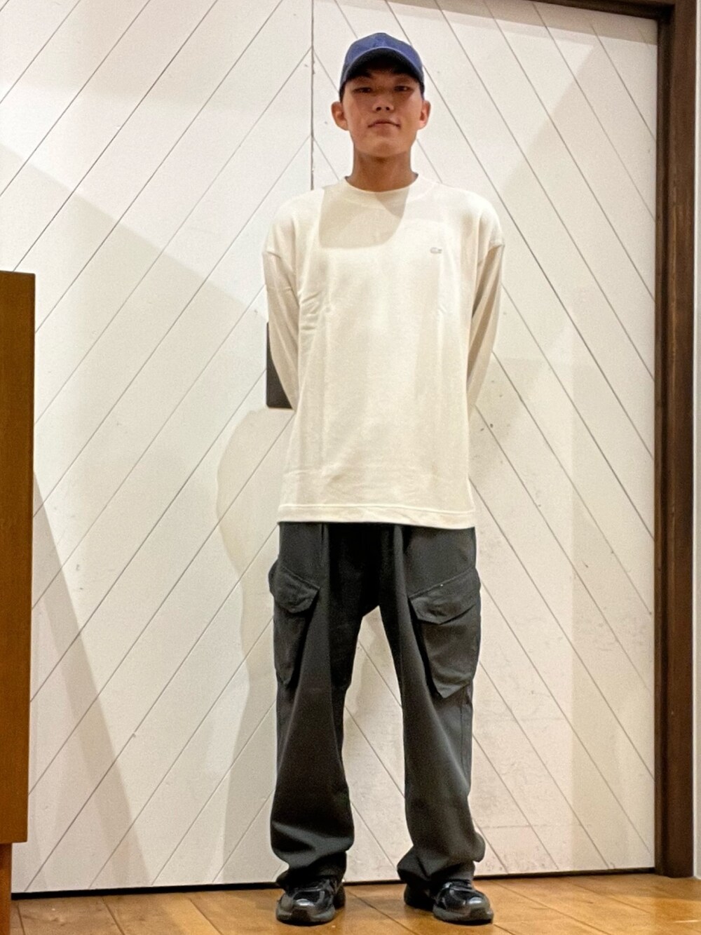インナーのロンTは身幅やアームが広めで、ラコステをゆったりと着たい方におすすめです。