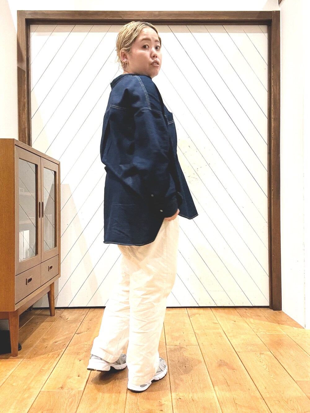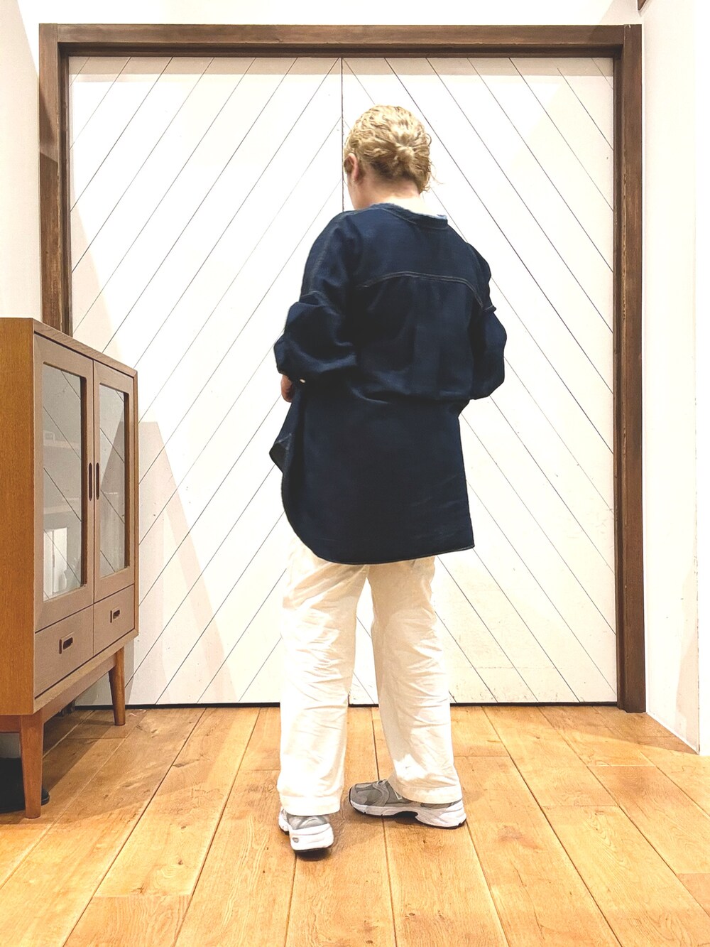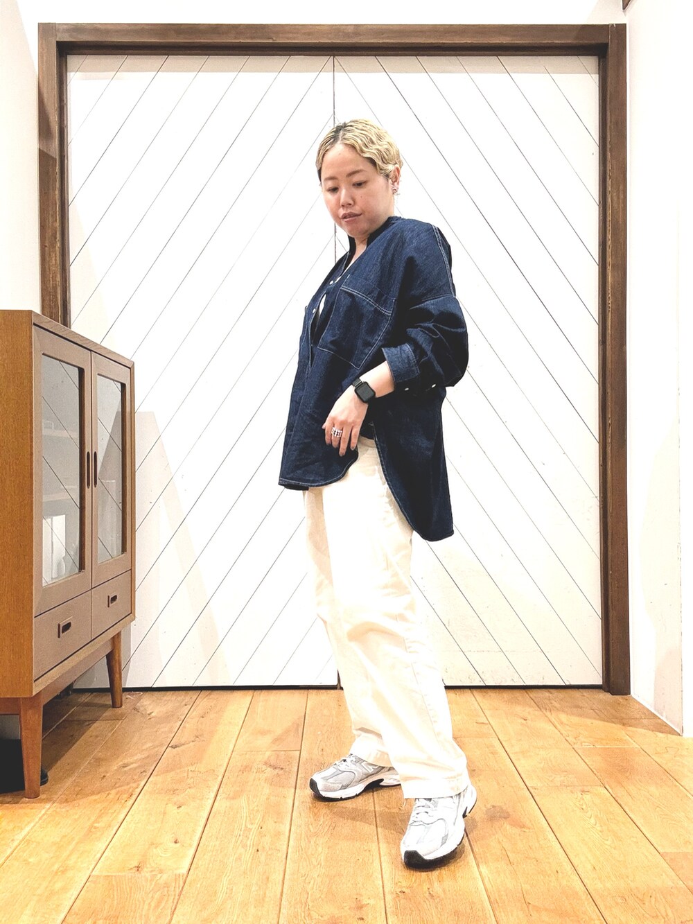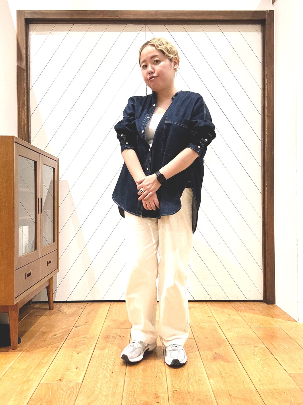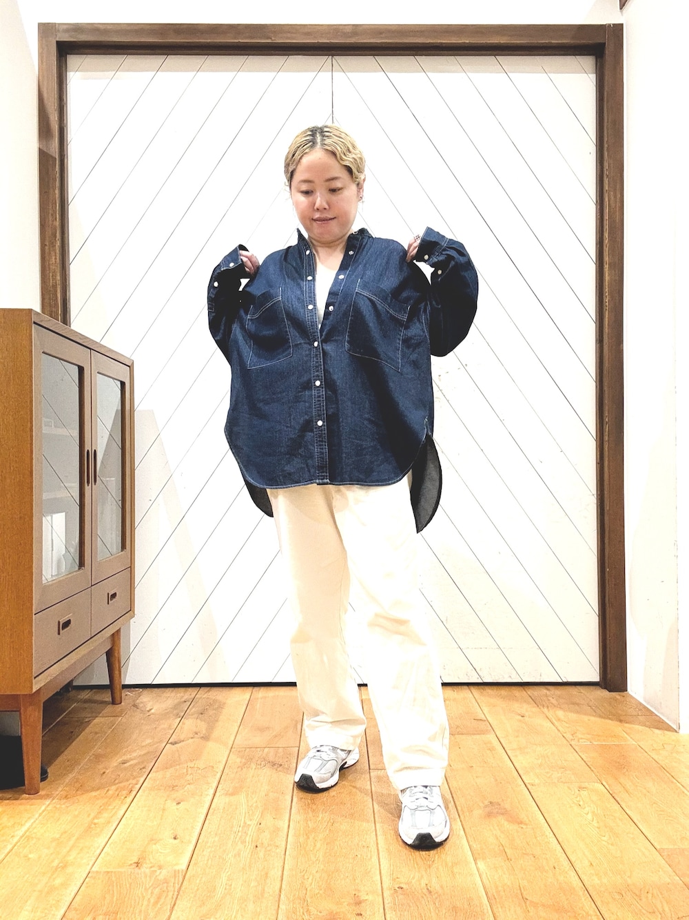 オーバーサイズのデニムシャツに