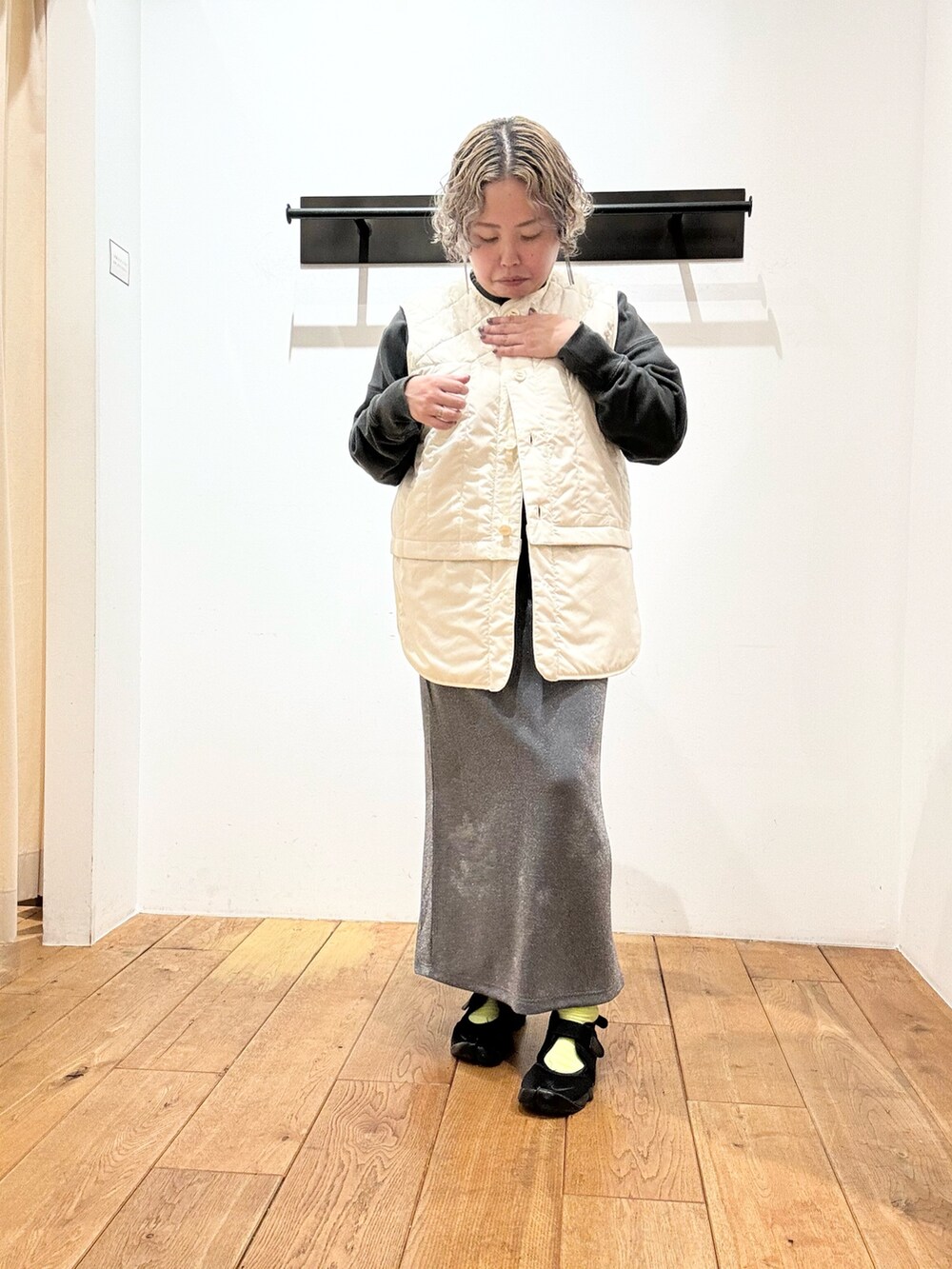 中綿ベストを合わせて色味をプラスしました!!