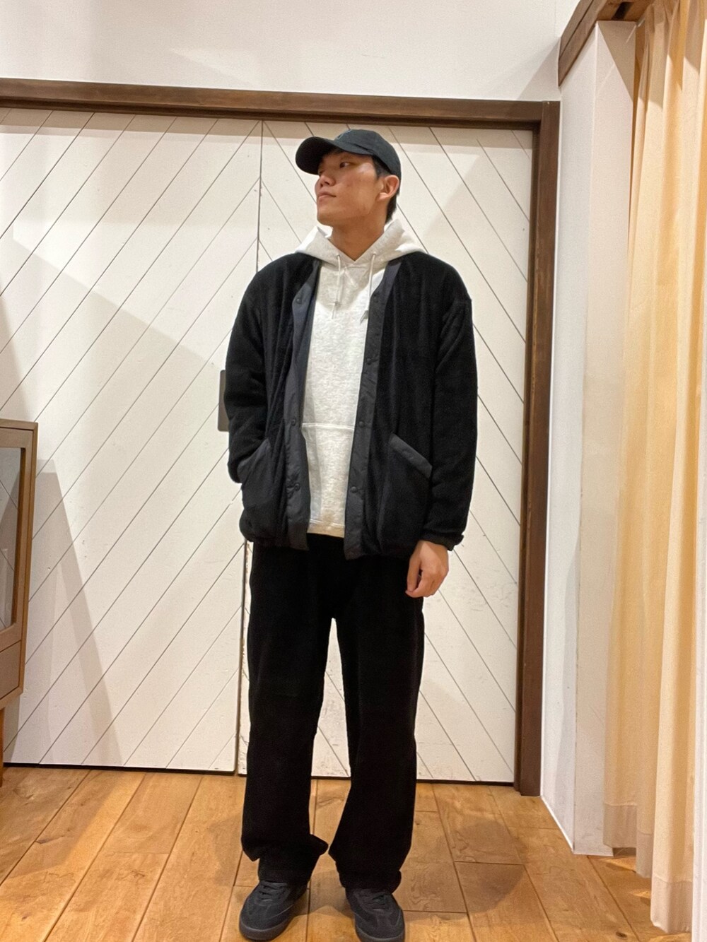 リバーシブルで着用できるスノーピークとの別注カーディガンです。無難にナイロンを表にするのも良いですが、フリースとコーデュロイで合わせていただければ季節感を掴めて良いと思います。