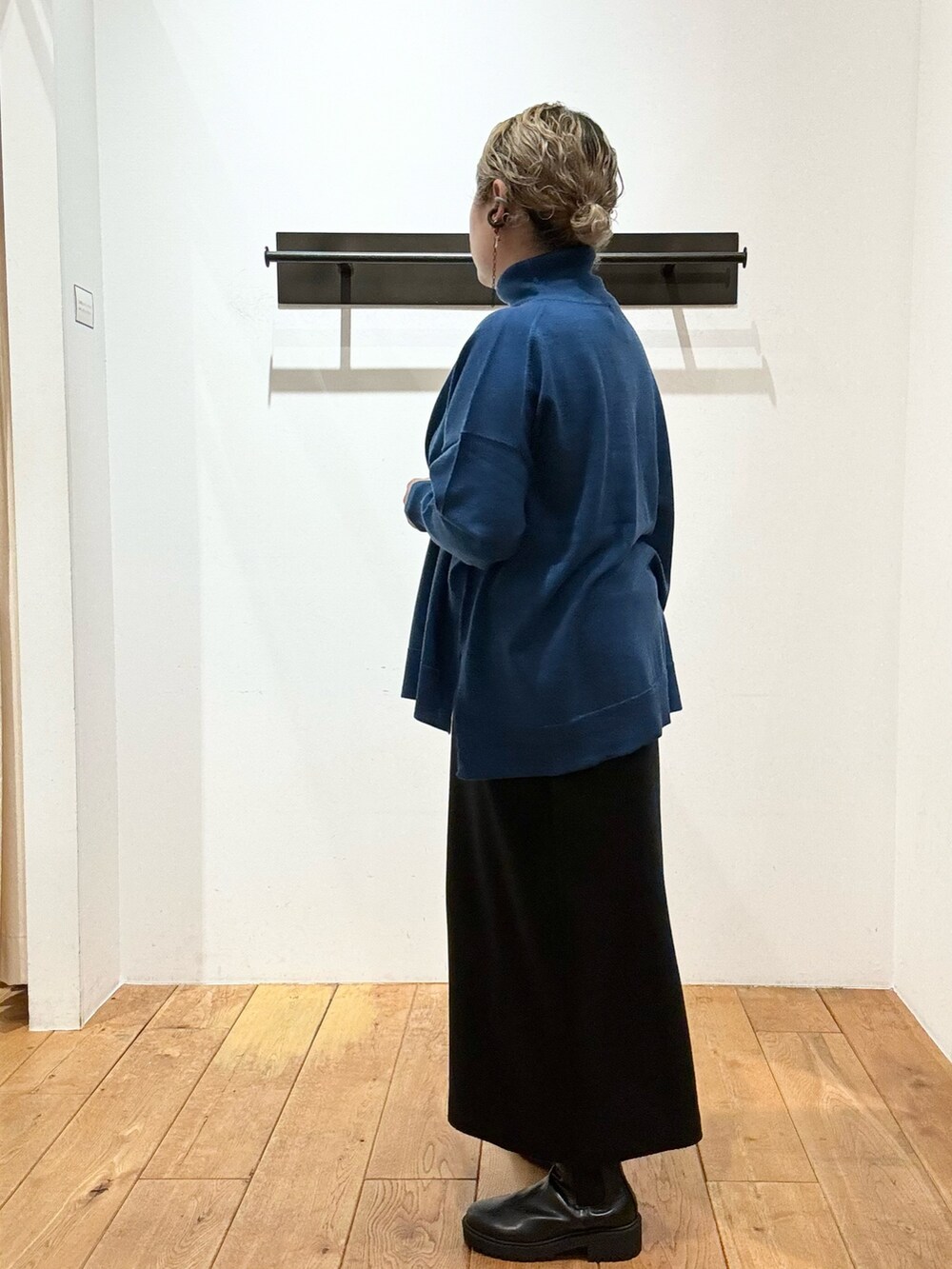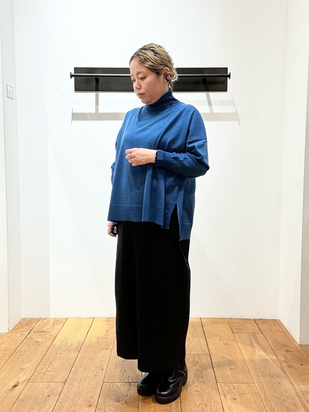 本日は鮮やかなブルーのニットで