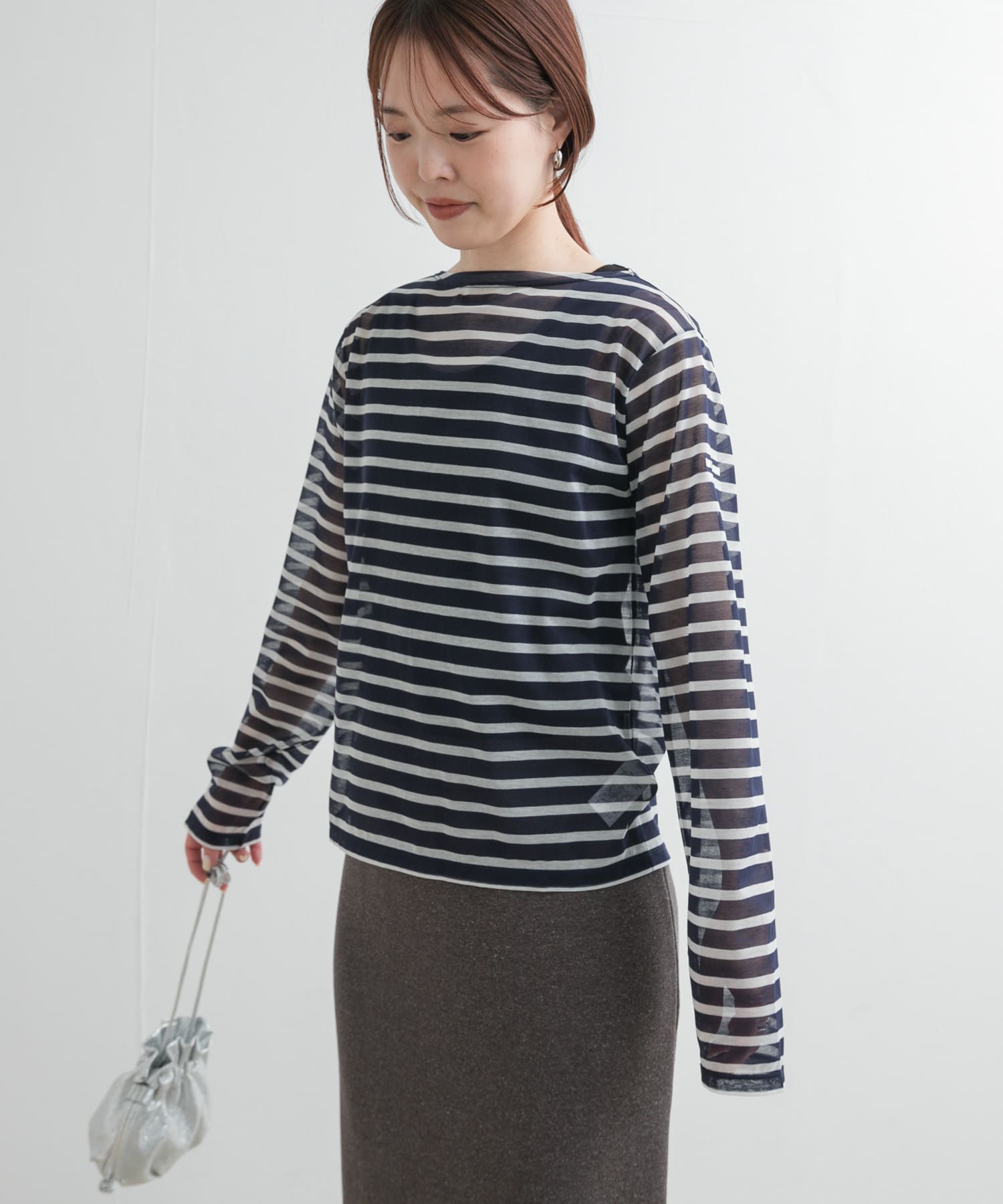 ボートネックボーダーを合わせて