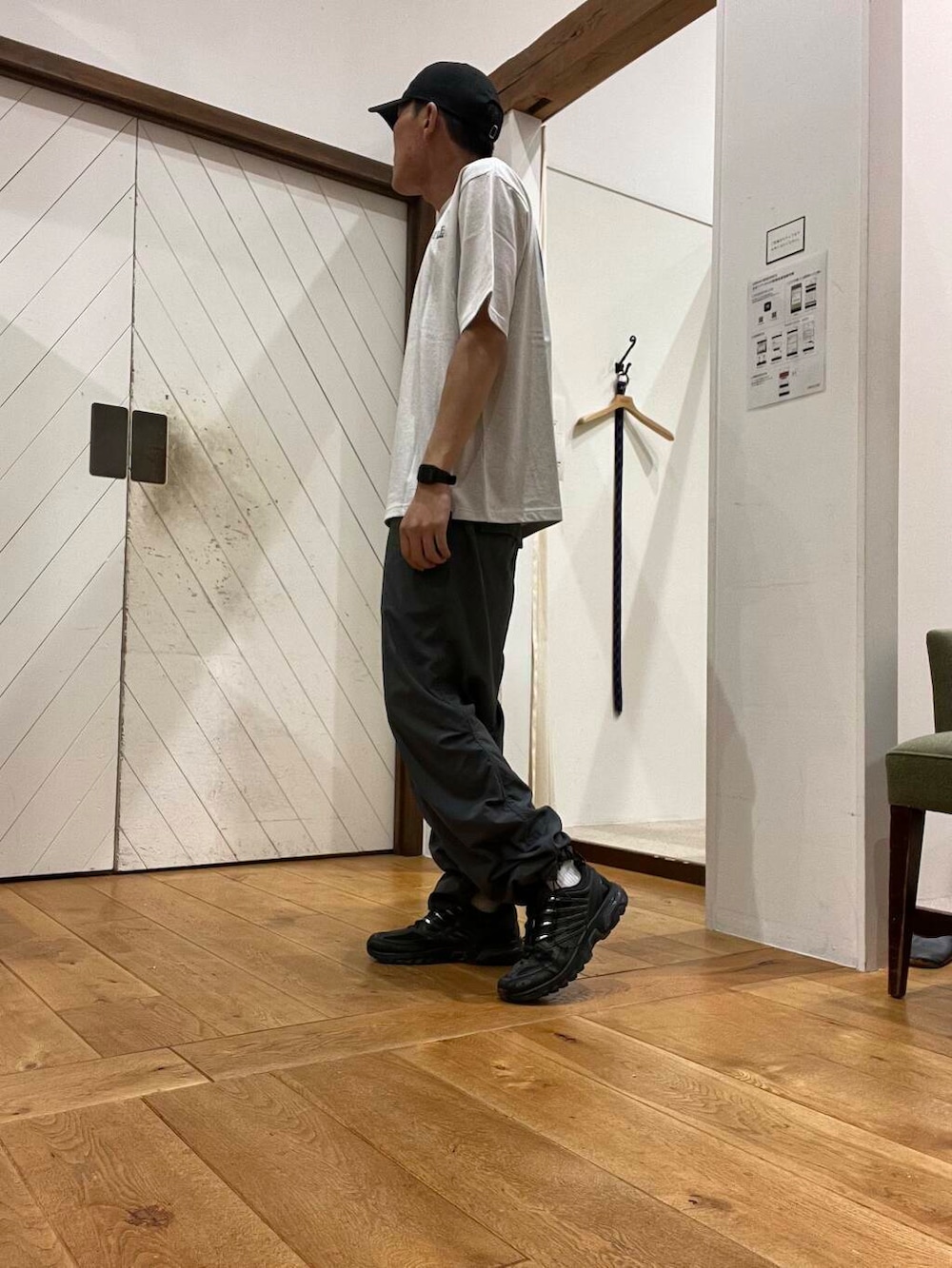 ナイロンパンツは膝元に入ったタックがポイントです。