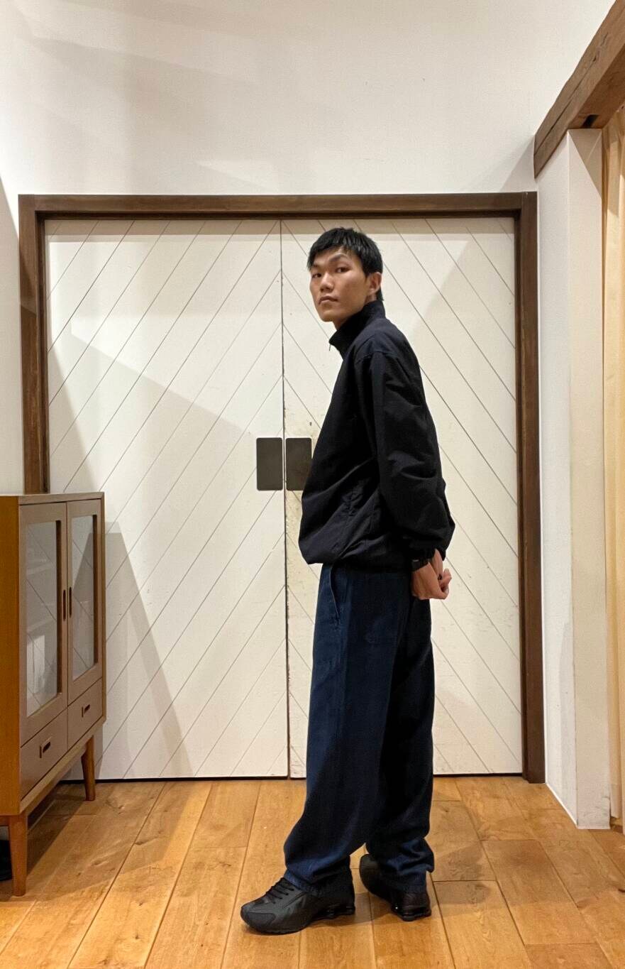 裾にドローコードが付いているので丸みを出して来て頂けます。このちょいダサ加減がクセになる1着です。